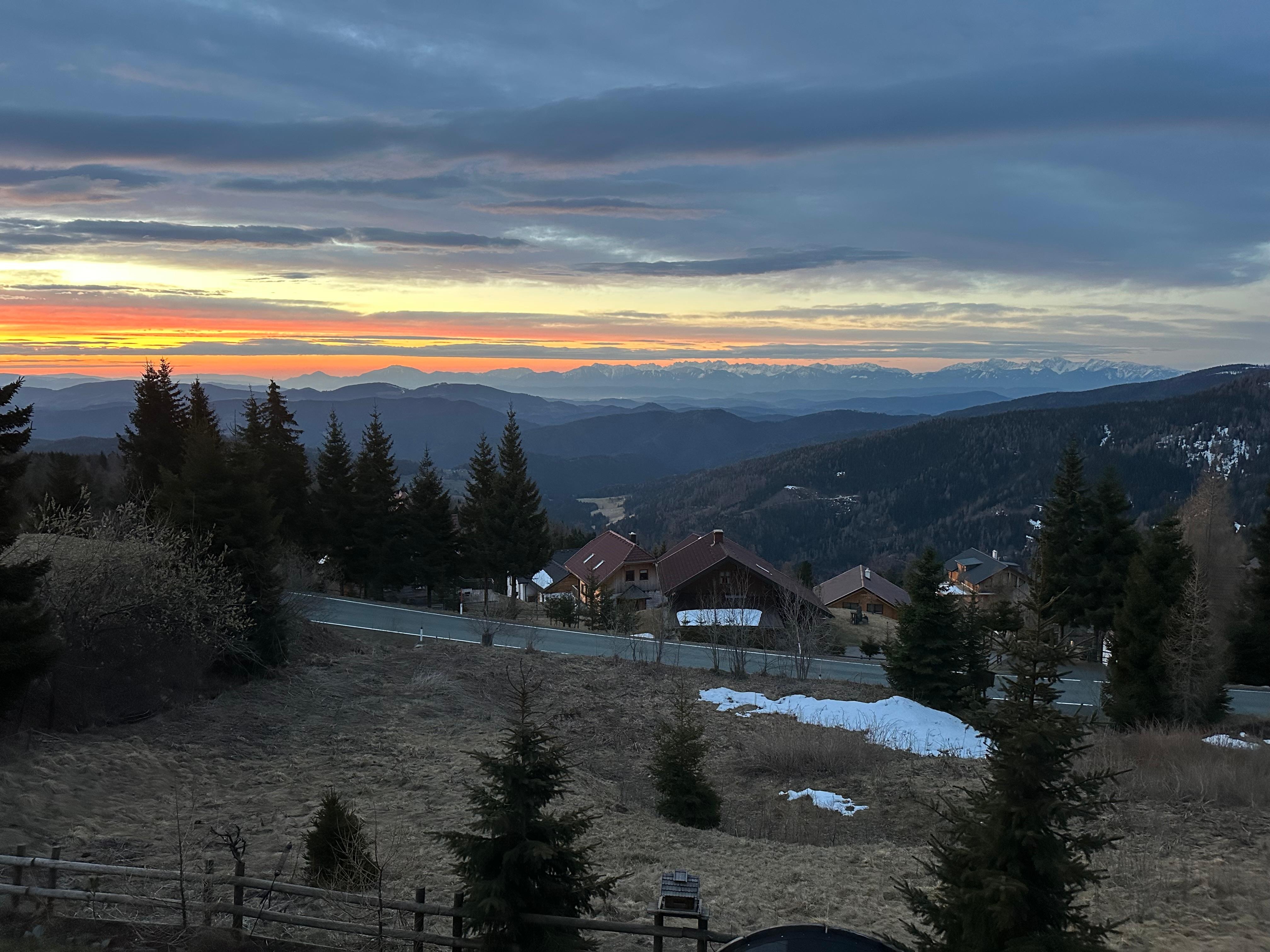 • Muy bonita vista panorámica a Klagenfurt de las montañas y el paisaje, en parte en las pistas de esquí.