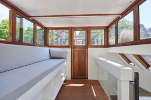 Upstairs Lounge: - Full 360 ° view on the canal - seating fits up to 5 people - Missoni cushions