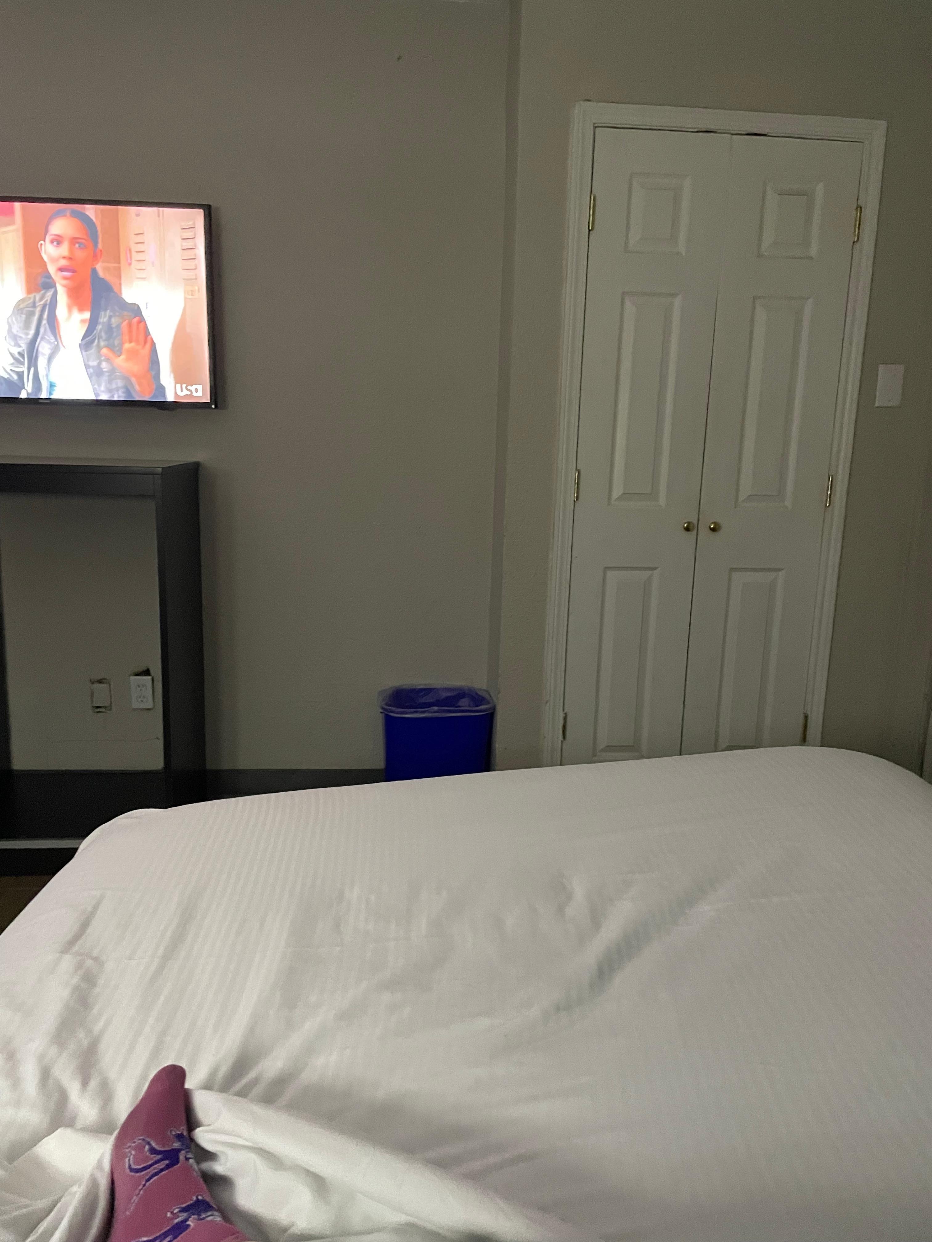 Was was good just not clean soap in the shower ,stains on the sheets other than that inside the room was ok outside does not feel safe front desk was nice