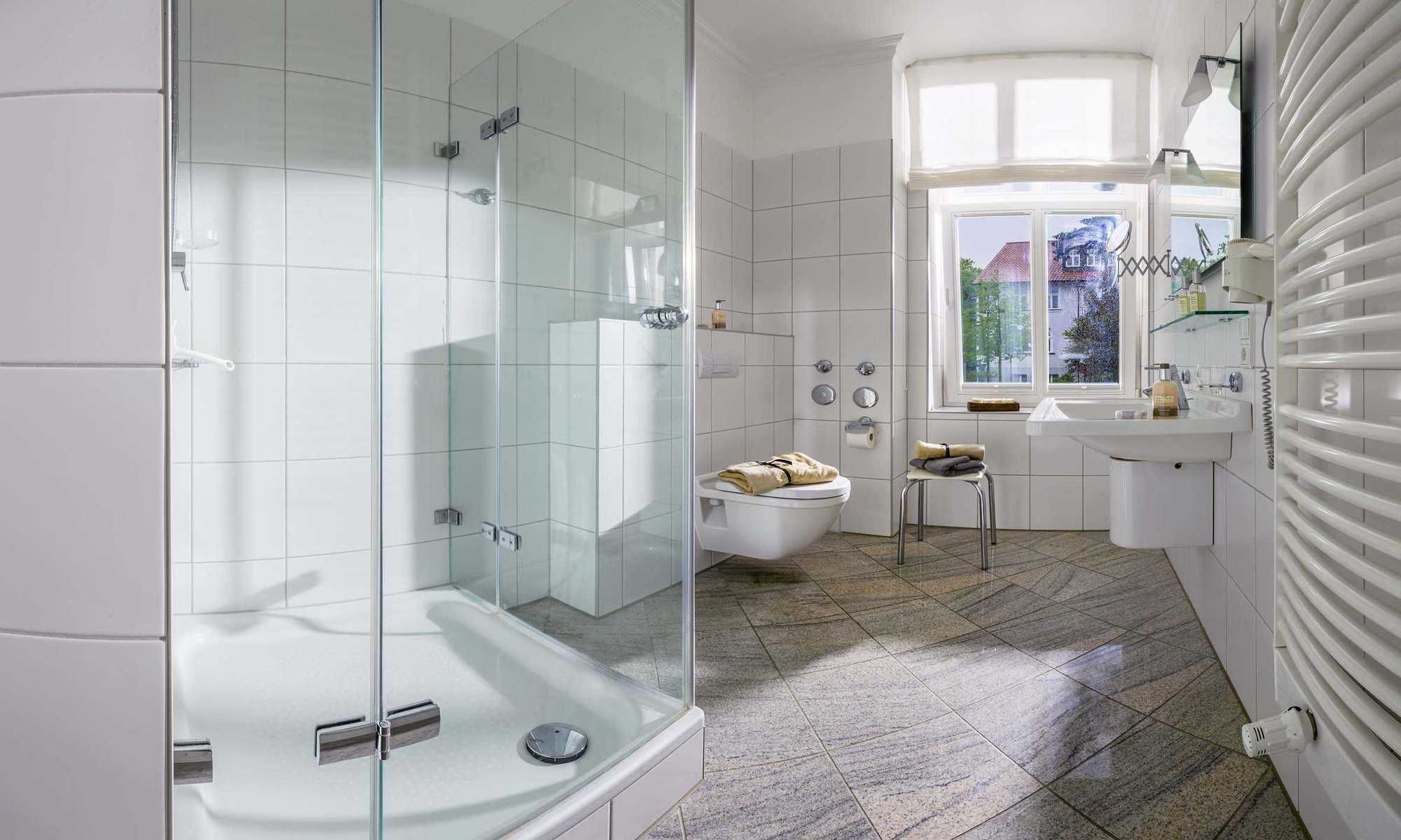 The villa, renovated in a bathing style, is located at Heinrich-Heine-Strasse 3, just a minute's walk from the fine sandy beach, the spa gardens or the shopping mile. Bordered by spacious green areas, it lies in the heart of the Baltic Sea resort of Binz. Inspired by the beauty of the bathroom architecture, the furnishings and furniture are sensible and selected with great attention to detail. An elevator, a bicycle storage room, coin operated washing machine and coin dryer are part of the equipment of the house. In addition, Villa Aesculap with its own sauna, solarium, whirlpool, fitness area, table tennis and table football offers pleasant rest and relaxation (solarium for a fee).[nbsp] In the summer of 2018, another residential building will be built in the neighborhood.[Nbsp] [nbsp]