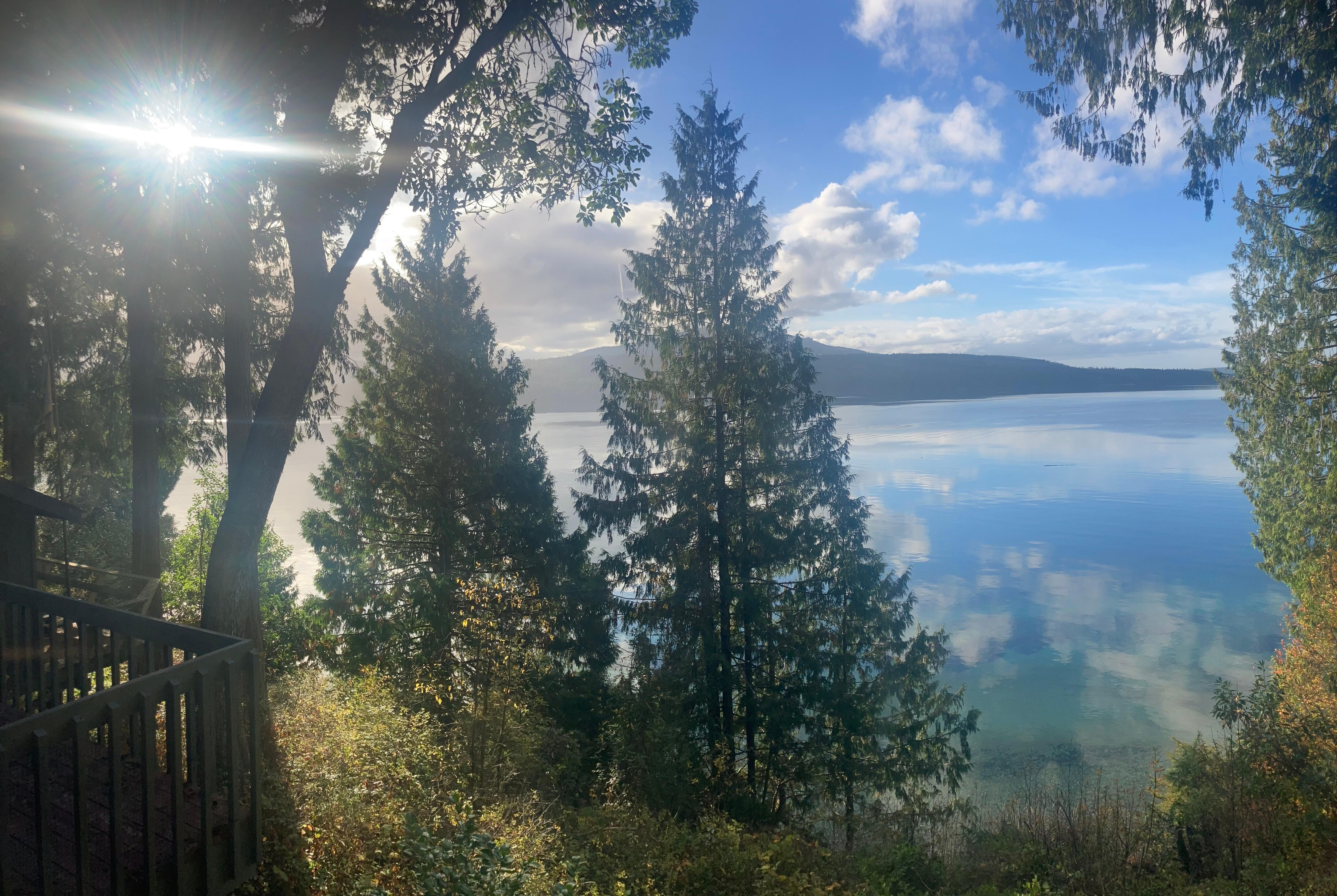 SECLUDED AND TRANQUIL SETTING Tucked back on a wooded acre, the Discovery Bay Lookout feels peaceful and private. A winding path leads through evergreens to panoramic water views. While there is one neighboring home and a few gravel driveways nearby, the property maintains a strong sense of privacy and serenity throughout your stay.