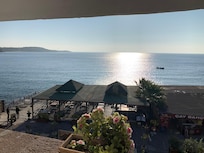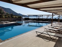 On beach with seasonal outdoor pool, near Assos Harbor