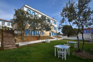 Balayımız için tercih ettiğimiz Garden Ada Butik Otel'den son derece memnun ayrıldık. Pandemi nedeniyle kahvaltıdaki çeşit sayısını azalttıklarını söylemelerine rağmen sabah kahvaltısı gayet çeşitli ve doyurucuydu. Salatalık, domates, (sahan, omlet ya da haşlama) yumurta, zeytin, peynir, reçel gibi kahvaltılıklara ek olarak her sabah ekstra sıcak (börek ya da pişi vb) ve mutlaka tatlı ikramları bulunuyordu. Konakladığımız oda büyüklük ve temizlik konusunda bizi tatmin etti. Sadece odadaki askılık sayısı bir hafta tatil yapacak iki kişi için yetersizdi ama durumu iletince hemen ilave askı getirdiler; ki bu da müşteri memnuniyetine gösterdikleri özeni göz önüne seriyor.