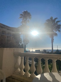 Estudio, balcón, vista al mar