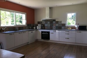 La casa es muy bonita, las habitaciones son amplias y luminosas, 2 baños y 2 baños son prácticos en el volumen, la ropa de cama es buena y los electrodomésticos también, el jardín que rodea la casa y la piscina son un activo real