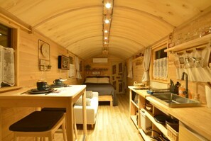 The cabin is air-conditioned and features a kitchen and space to spread out with a separate bedroom. Guests can expect to find free WiFi. Other standard amenities include a coffee maker and a dining table.
