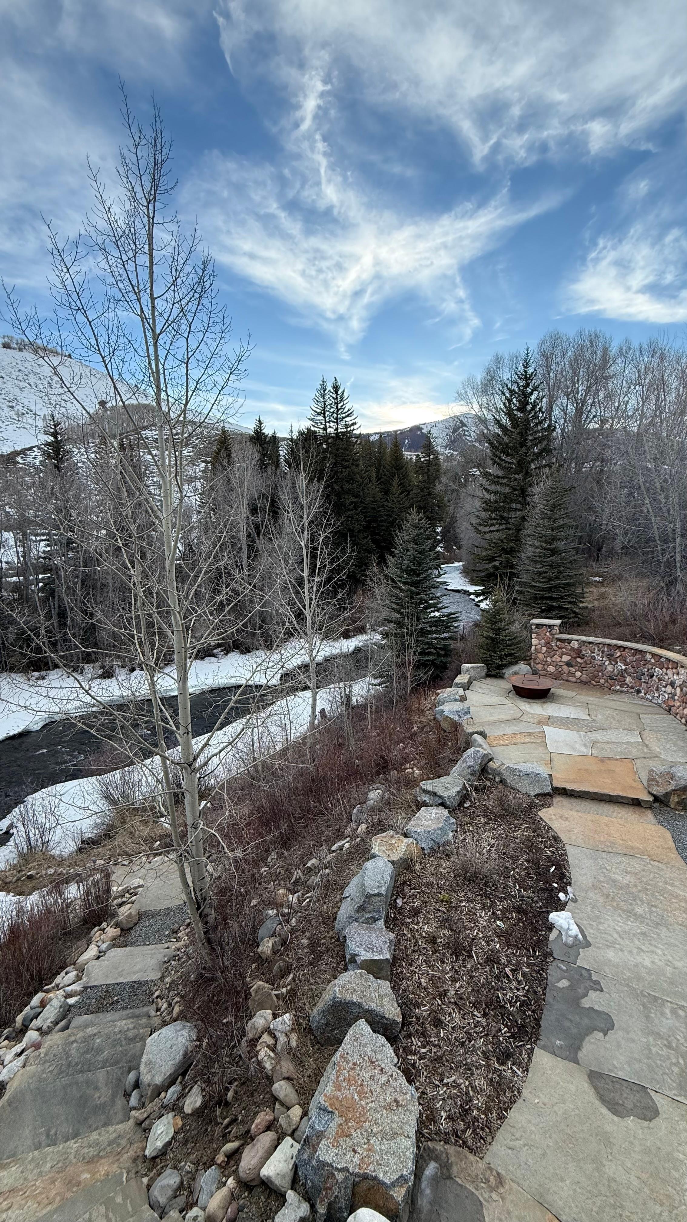 Downstairs on the garage level there is 4th bedroom with queen bed, living area with pull out sleeper sofa, full kitchen and access to the outside patios. The sauna is also on this level to soothe those tired muscles after a long day of skiing, hiking, or managing a fly rod. Speaking of fishing, just step outside to utilize what may be the best part of this wonderful home, the outdoor spaces! The covered porches that wrap around the home have a comfy sitting area with gas fire pit, a covered and enclosed grilling area, and flagstone patios leading to an outdoor fire pit with views of the Slate River below. Just a short walk down the flagstone staircase to the river and you will find another world surrounded by beautiful trees and the sound of a Colorado river running with trout! This property has 1/2 mile of private river access and sitting in the Adirondack chairs by the river might just be the best place anywhere for that first cup of coffee or that last glass of wine!