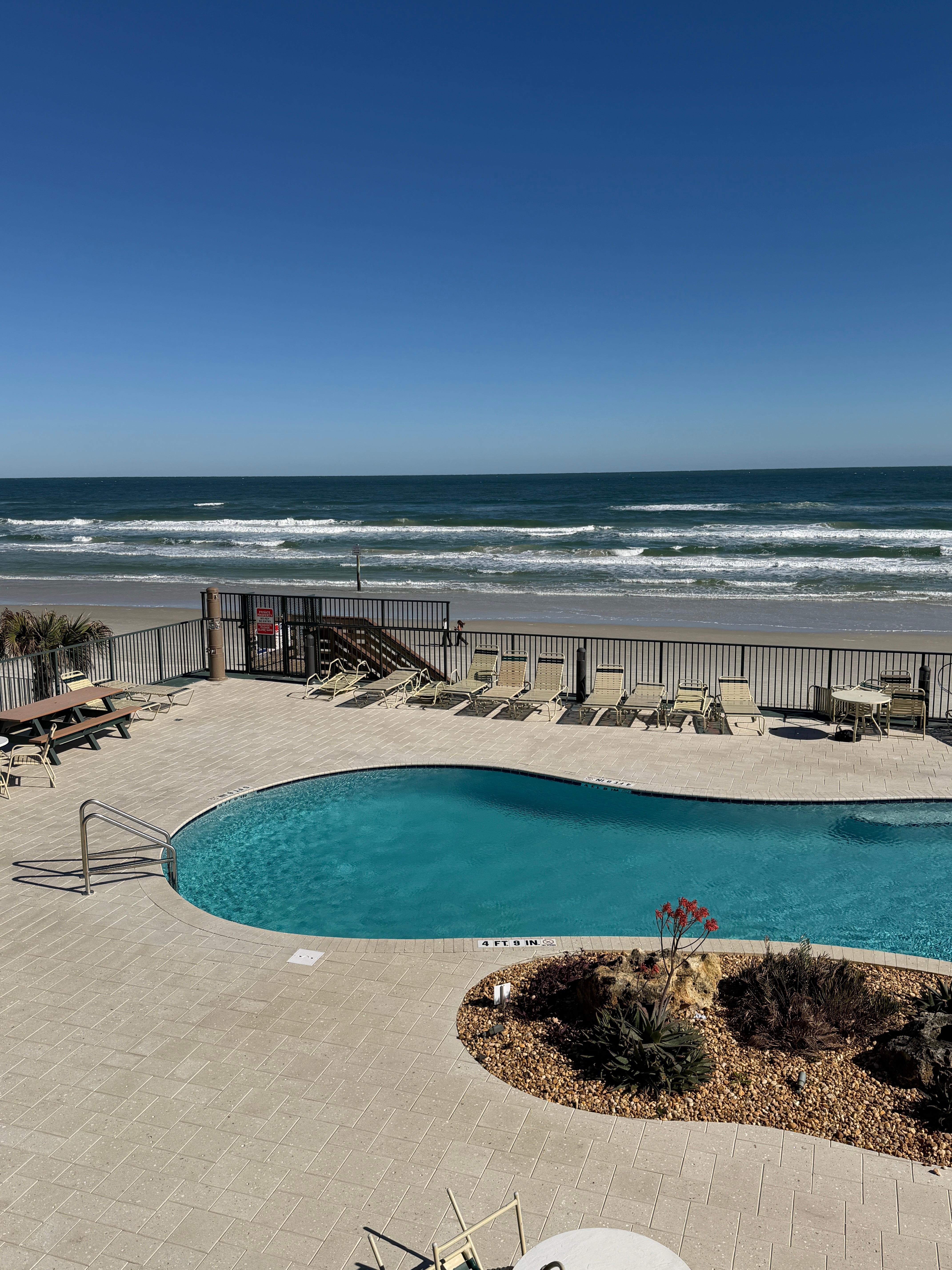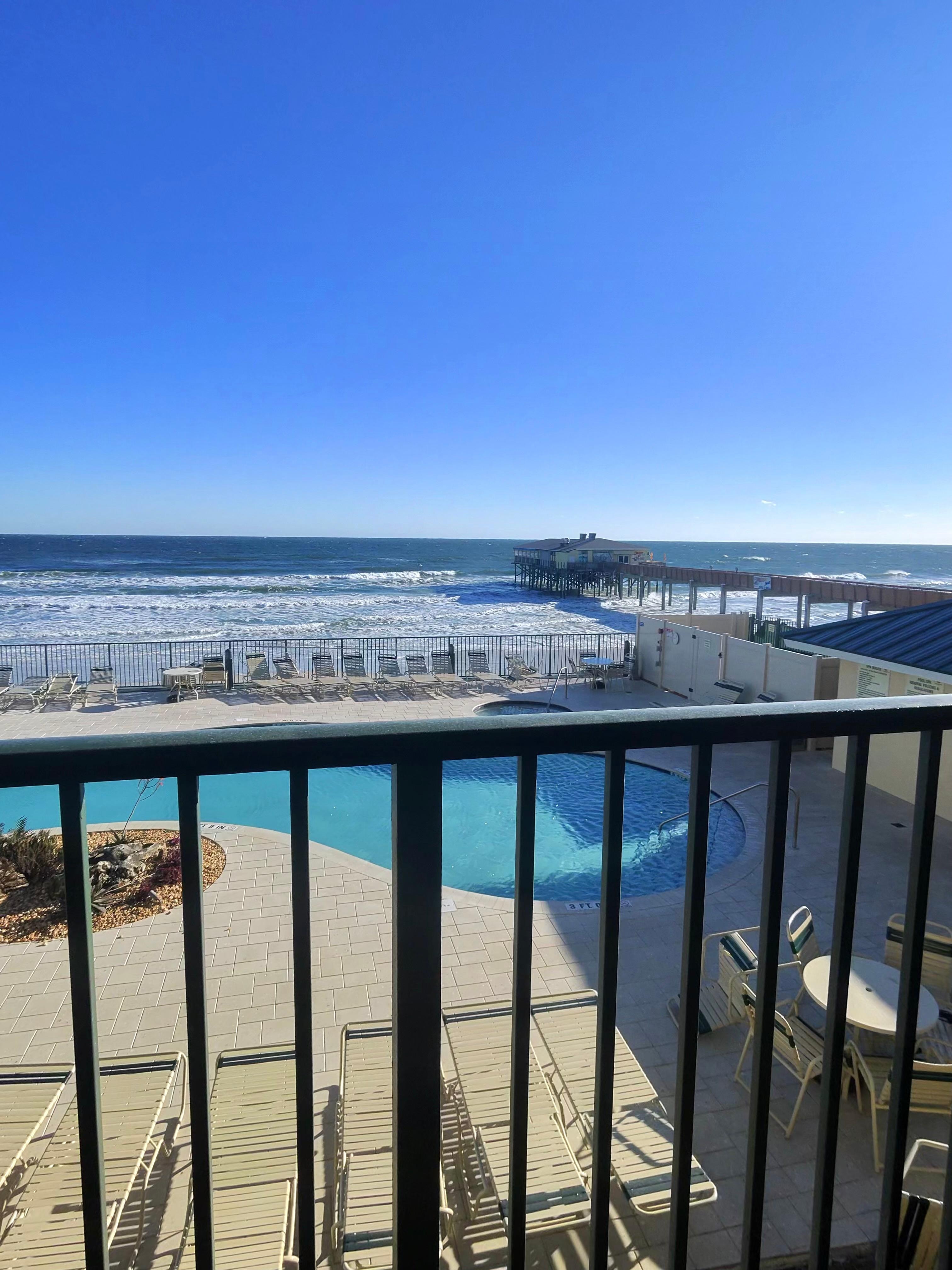 You can rent this luxury condominium for the price of a hotel room or less. This condo unit is located next to the famous Sunglow Pier, in a quiet section of Daytona Beach Shores. This is a place where can enjoy the ultimate beach vacation in a relaxed and fun environment! The Sunglow Resort is located directly on the beach, so you can enjoy magnificent sunrises over the Atlantic Ocean each morning. There are miles of white sandy beach where you can spend your days swimming, fishing, surfing, boating, jet skiing, biking or just relaxing on the pool deck soaking in the famous Florida sunshine.