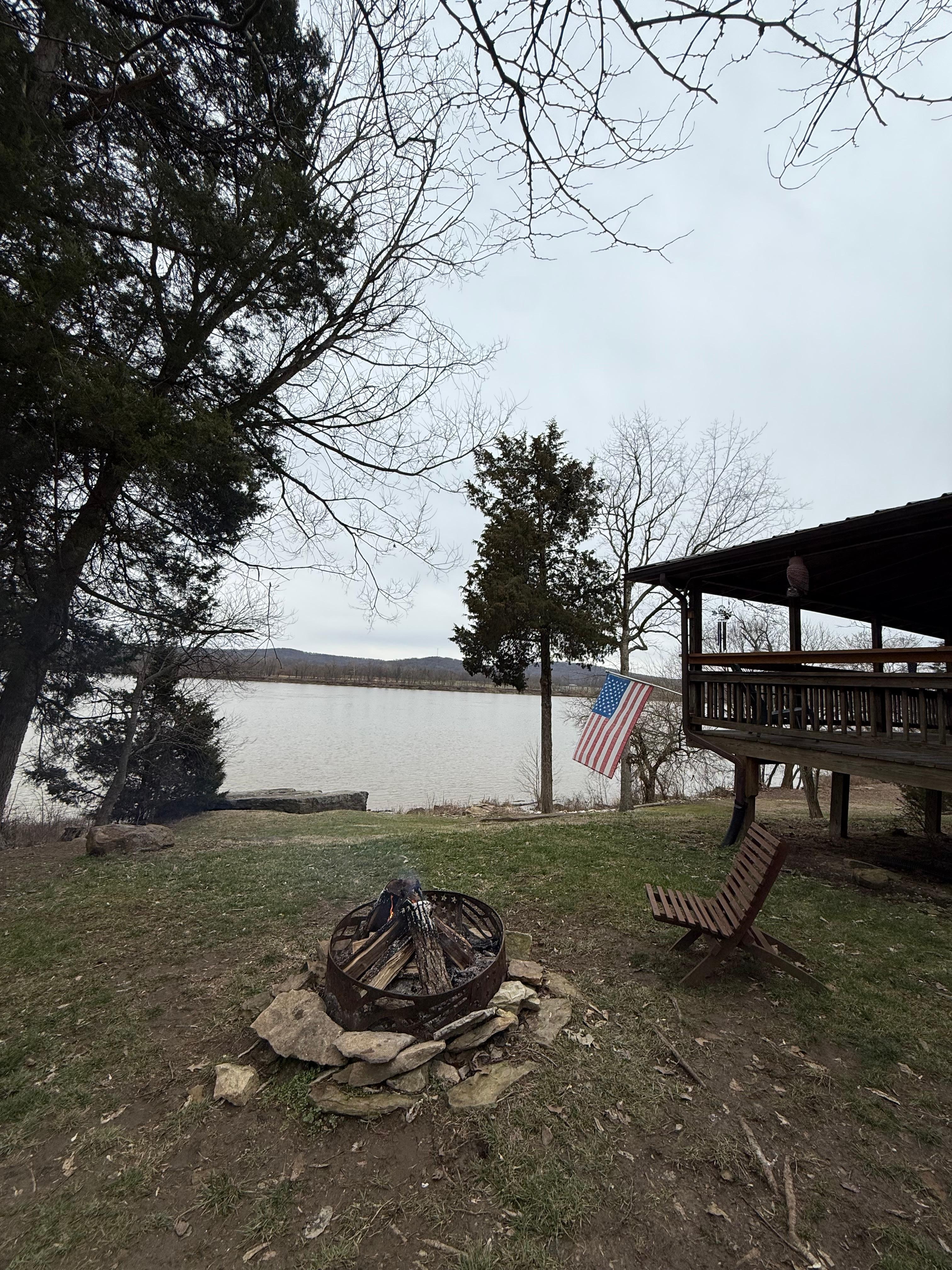 River side cabin located on the Beautiful Ohio River with several miles of spectacular open water views. Large covered porch with dog ramp into fenced in yard. Year round permanent dock. Sit by the fire & watch the moon shimmer across the surface of the water.