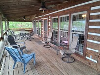 Everything was very nice and well stocked.We had been here but a short time and my wife said "I could live here. Easily". Such a relaxing spot. We spent the majority of our time on that wonderful deck, enjoying the sights and sounds of the river. There were a variety of birds with also ducks, geese and a loon, fish jumping, a couple of squirrels jumping and playing. Saturday there were 3 barges passing in opposite directions at once. Sunday morning, just after sunrise, two were passing at the same time. Very peaceful.Saturday afternoon we made an hour drive over to The Log Inn, in Haubstadt. Built in 1825. One of the old, original rooms, was dined in by Abe Lincoln. Worth the drive.Derby is a nice, friendly little town.