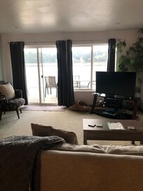 Waterfront condo with kitchen and patio