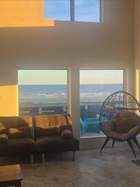 Pros: Beautiful view. Amenities in the house were everything you’d need (drip coffee maker & a Keurig, kitchen utensils, seasonings, etc), board games/card games/cards, lounge chairs, and a beautiful sunrise. Both bathrooms were pretty nice. The third “bedroom” is a loft overlooking the living room downstairs but has a beautiful view of the sunrise (just not really too private if you’re looking for that). Great WiFi signal. Easy checkin. Great beachside location.Cons: Required an additional 89 insurance fee, downstairs master bedroom not really too private due to the thickness of walls and fireplace that’s split between the living area and the bedroom. One parking space in front. It’s far from Galveston and convenience stores. Kroger/Walmart/CVS/Walgreens/Restaurants are 25-40 minutes away. Overall a great stay. I’d get it for a week long vacation where I could get supplies and chill. For a weekend trip it was a pricey location. So it’s situational on what you want. This could be your gem. Happy Travels!