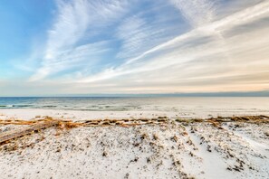 ¡Siéntase como en casa en esta casa de playa de varios niveles que lo tiene todo para una escapada inolvidable, que incluye una piscina privada frente al Golfo! El nivel principal ofrece una espaciosa sala de estar, piso de baldosas y una barra húmeda con cubierta de granito. ¡Aquí también puede encontrar una cocina totalmente equipada con electrodomésticos de acero inoxidable y encimeras de granito que seguramente lo ayudarán a canalizar a su chef interno! La sala de estar grita comodidad y relajación, ya que cuenta con tres sofás grandes ubicados estratégicamente cerca del televisor de pantalla plana. El área de la cubierta es simplemente maravillosa; puede almorzar o cenar en la mesa del comedor, hay acceso por tierra por las escaleras hasta el nivel principal de la playa, a pocos metros de distancia a través de dunas y avena marina. Este alquiler de vacaciones tiene tres cubiertas frente al Golfo.
