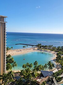 Check in was easy. Went up and entered with door code that was provided prior to our arrival. This unit is absolutely beautiful, well kept up and updated. The view is very nice. Your balcony faces east with views of the beach, Hilton Hotel and also Diamond Head in the horizon. You will also have a great view of the fireworks the Hilton puts on every friday at 7:45pm. The bed is very comfortable with great sheets and pillows. The couch is firm and comfortable. We really appreciated the kitchen and all the essentials like knives, pans, plates, forks and spoons, coffee maker, an assortment of cups and even a rice cooker. There are 2 foldable beach chairs and a cooler they provide for your use. Beach towels are also provided. The bathroom is spacious and shower is great with a strong shower head. The unit is the first from the elevators which makes for a easy walk to the laundry room and trash room. The only thing we didnt like about the unit was the entry door. No dead bolt for added security and the door does not sit tight to the strike plate. It has about a 1/2 inch gap and play to it. We enjoyed our stay here and would use this unit again if we're in Waikiki again. Hopefully they can address the door issue, making this unit perfect.