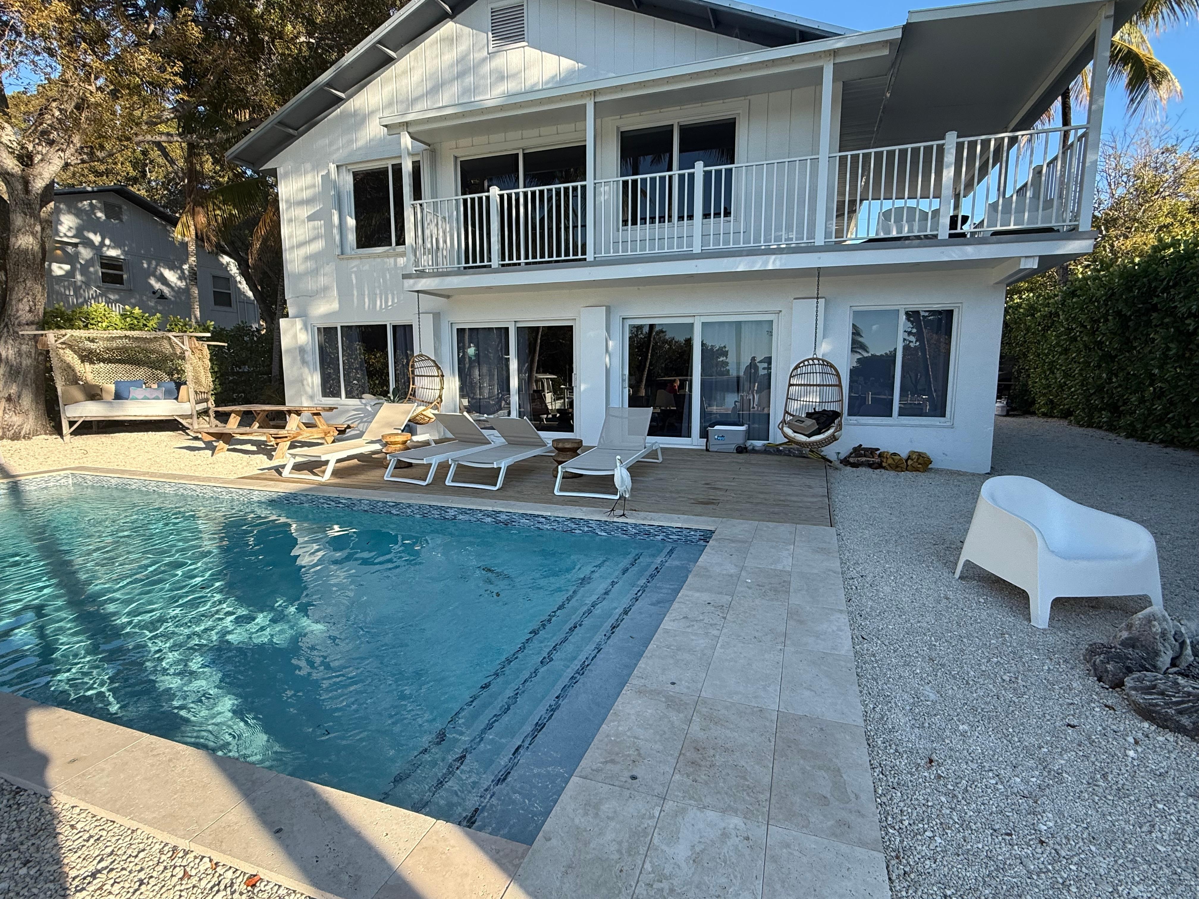 This Bayside house with a gorgeous heated pool and deep water is centrally located in the heart of the Village of Islamorada. The house is walking distance to the most of what makes Islamorada so special. It is only a 1/2 block from famous Lorelei Cabana Bar & Restaurant and 1/2 block from the Casa Morada Hotel. Large open living/dining/ kitchen area overlooking a partial view of open ocean on Bayside. Back Country Fishing is minutes away as the house sits only one property from open ocean. It has 3 master suites with king each, 1 king bedroom and 1 additional bedroom with twin beds.