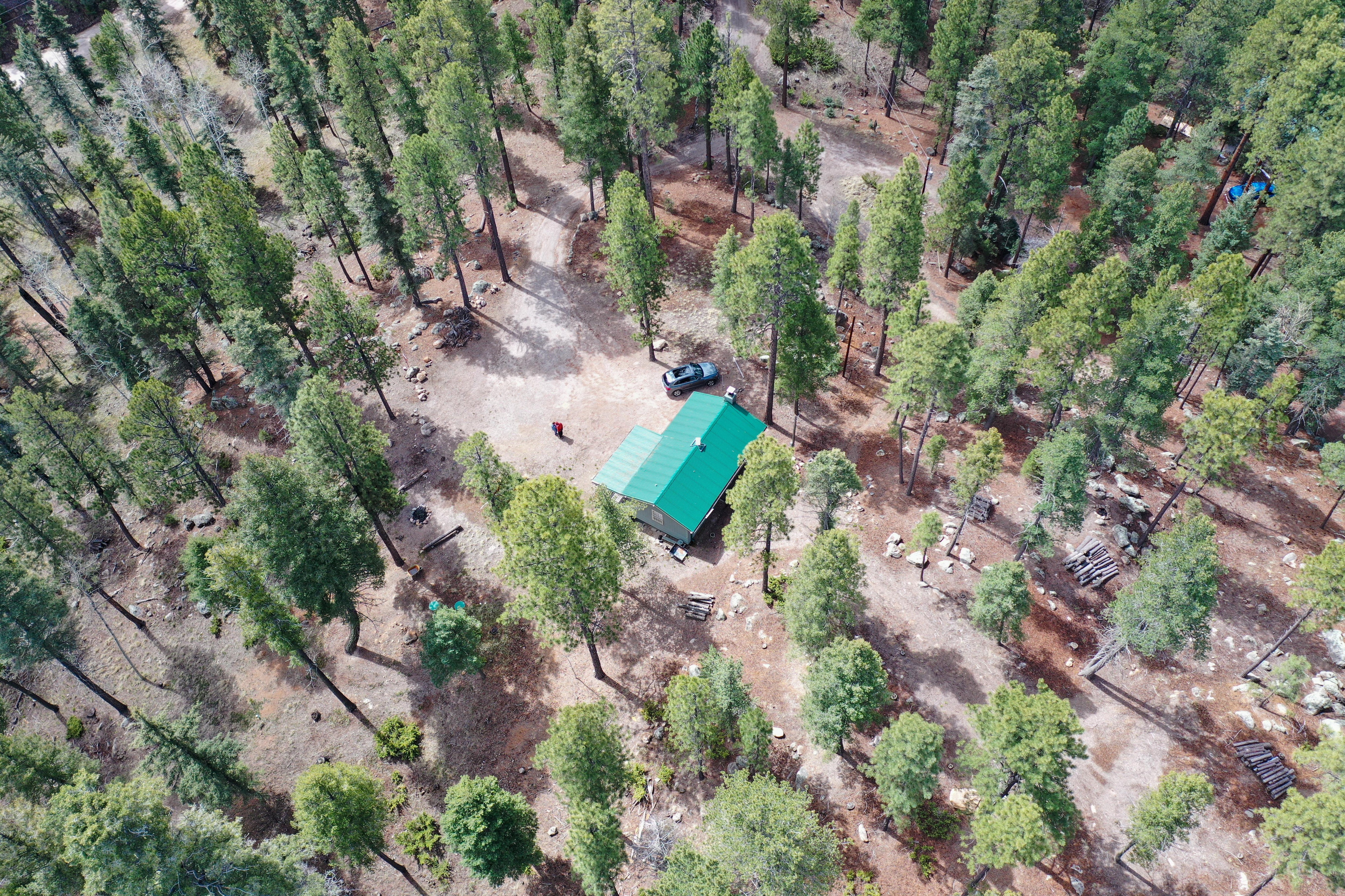 Given our remote location, power outages are common, especially during inclement weather. Please note that the cabin sits atop the Jemez Mountains, accessible via narrow mountain roads. In winter, these roads may be covered in snow or ice, requiring a four-wheel drive for safe passage. It's highly recommended to have chains available for added traction