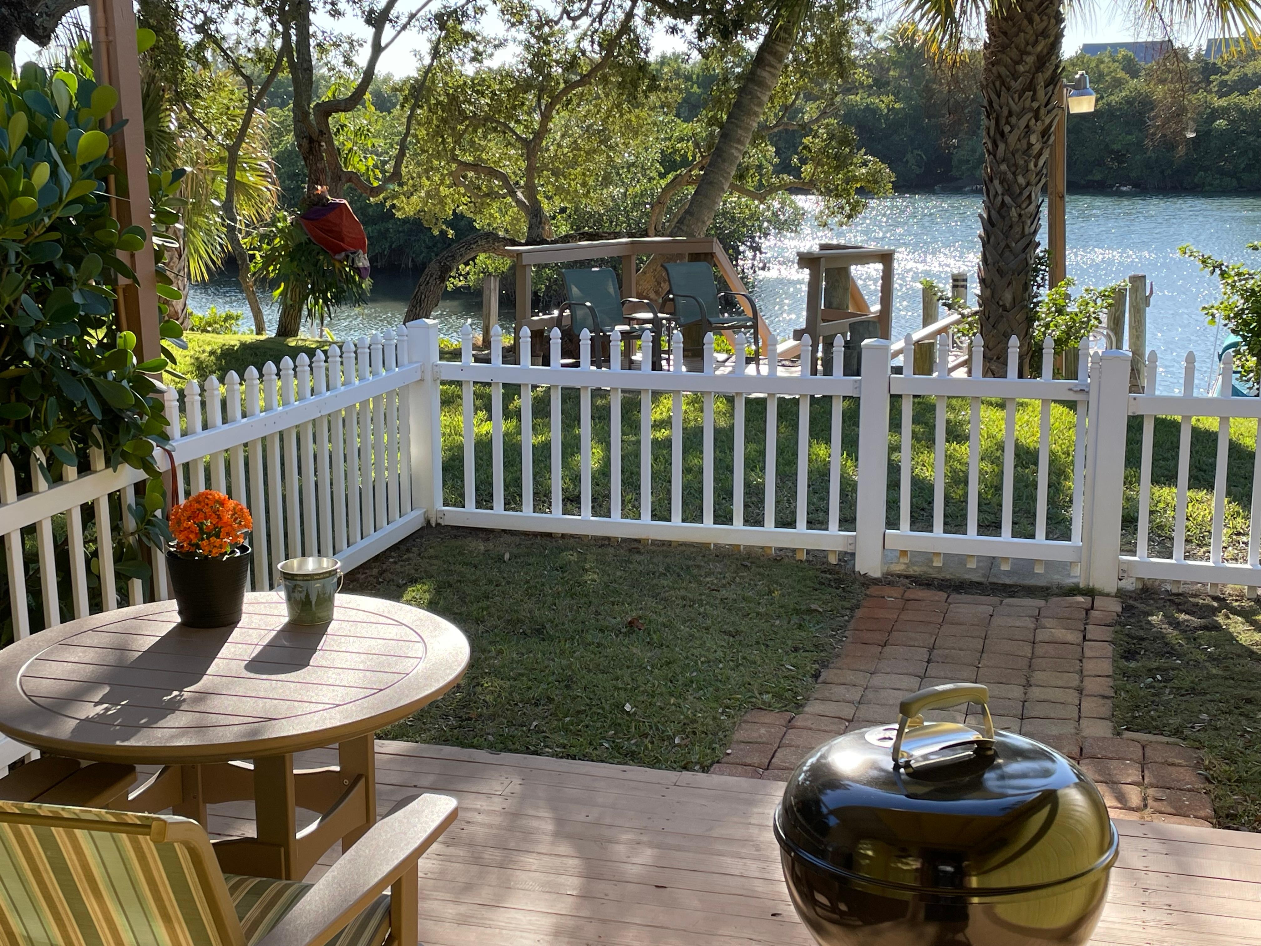 From the moment you enter the property, you know that this will be a special vacation. Continuing around the house to the water you will see the charming white picket fence and colorful plantings. They lead the way to a spacious front deck that is the perfect place to sit and bird watch, admire the boats, or those practicing yoga on a paddle board, or kayakers. Enjoy a morning coffee or evening night cap.