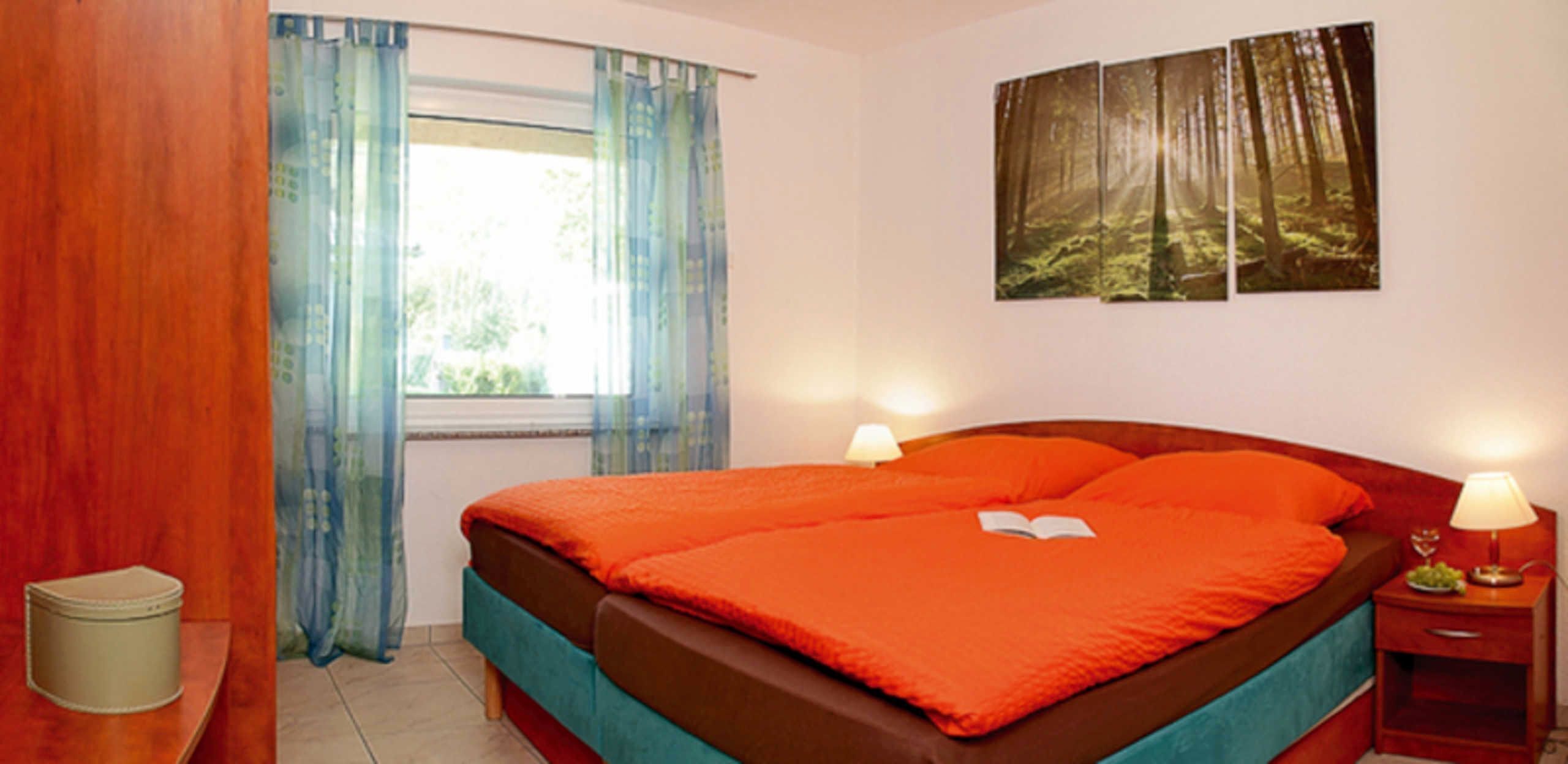 The apartment "Malin" is a 60 m², modern equipped apartment. Upstairs there is 1 bedroom with double bed (cot possible for free) and 1 children's room with a single bed. On the ground floor are the living and cooking area and the bathroom with shower / WC. The living room is with sofa, TV u. Radio equipped. The kitchen area consists of a fitted kitchen with dishwasher, oven, coffee machine, kettle, toaster and microwave as well as a dining area. The terrace is equipped with seating, in the garden is a sitting area with barbecue. A parking space and garaging for bicycles are available on the property. Bed linen, tea towels, meals, final cleaning and Wi-Fi are included in the price. Please bring your own towels. The apartment is a Non smoking apartment, pets are not allowed.