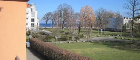 A solo 120 m de la playa vives en un moderno apartamento de 2 habitaciones. El apartamento de 45 metros cuadrados está en el primer piso sobre la galería comercial. El salón está amueblado con un sofá cama, mesa de café, aparador, estantería, televisión por cable, radio, zona de comedor (mesa de comedor y 4 sillas) y cocina americana. Desde el balcón este tiene una vista maravillosa del Parque Báltico. El dormitorio tiene una cama doble y un armario. La cocina estaba modernamente equipada con microondas, nevera, cafetera, placa de dos platos, tostadora, lavavajillas, hervidor de agua y vajilla. El baño con ducha y WC completa el apartamento.