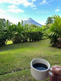 View of volcano from part of pool. Great drinks and friendly staff. Saw toucans and hummingbirds. Stayed in presidential suite which is the only villa that can be parked at all other villas you must park at main lodge and take golf cart or walk. Breakfast was excellent!!!!!