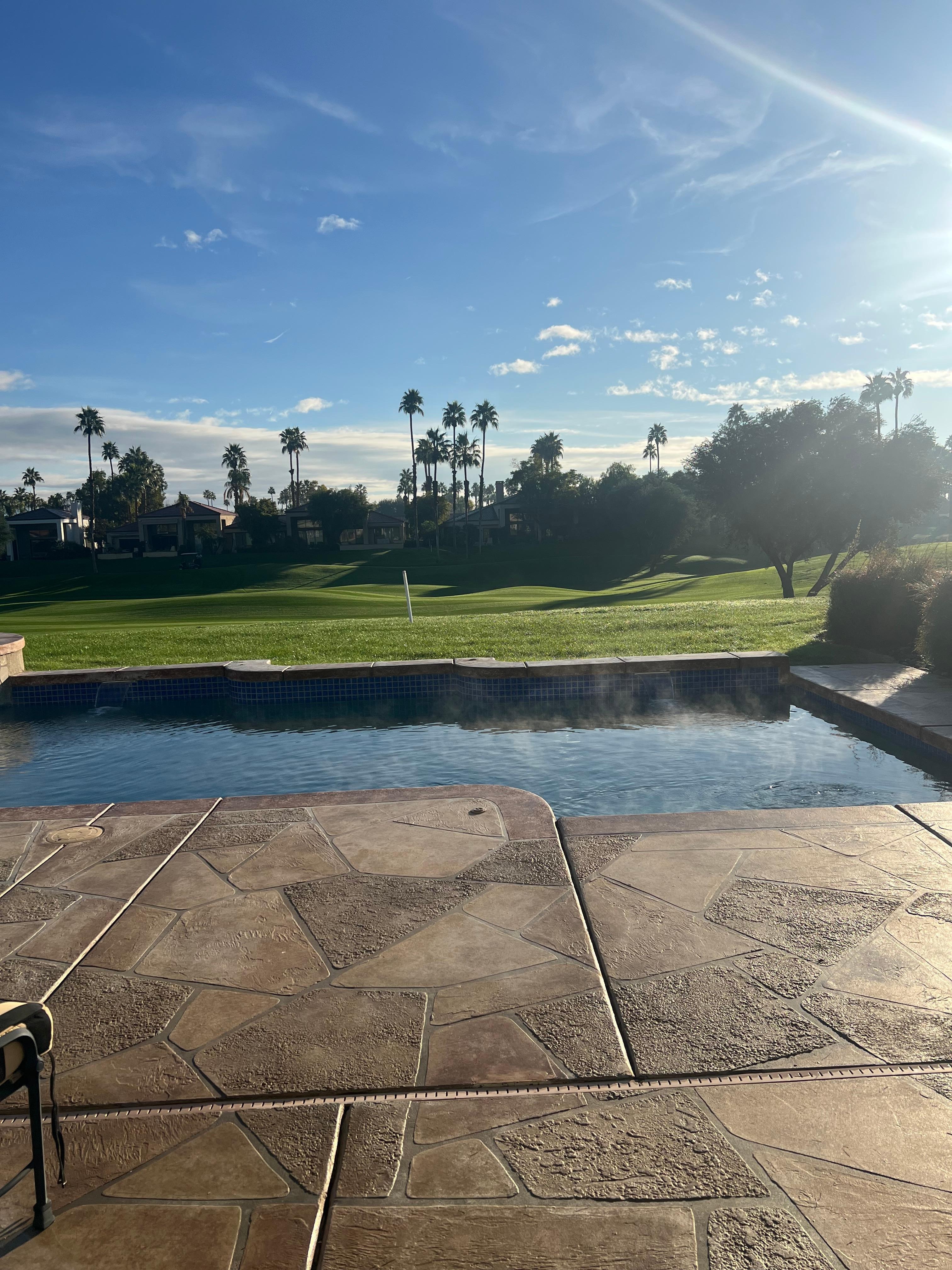 Perfectly situated on the second fairway of the Palmer Private Course at PGA West, our luxurious 3 bedroom, 3 bath home offers all you could ask for in a desert oasis. Our home is an entertainer’s delight. The open floor plan and outdoor area allows for comfortably entertaining guests, welcoming family to a home cooked meal in the gourmet kitchen or out on the patio, BBQ’ing on the built in outdoor grill, or relaxing by the private pool and spa while you catch the game on the outdoor television. Don't forget to catch the sunset from the private backyard spa.