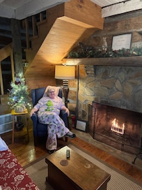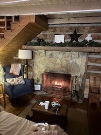 Lakefront cabin with kitchen and fireplace
