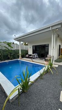We stayed at one of the villas (numbers 101 to 108) that were in front of the pier, and that had its own pool in the front. What a great time! So glad we did this instead of staying in a standard hotel room. We watched the sun set each night, walked along the water to the restaurant 50 meters away, treaded the water near the pier when the tide was in… and played in the pool with our daughter!
