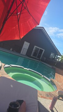 No, this vacation home doesn't have an indoor pool; however, there are an outdoor pool and a hot tub.