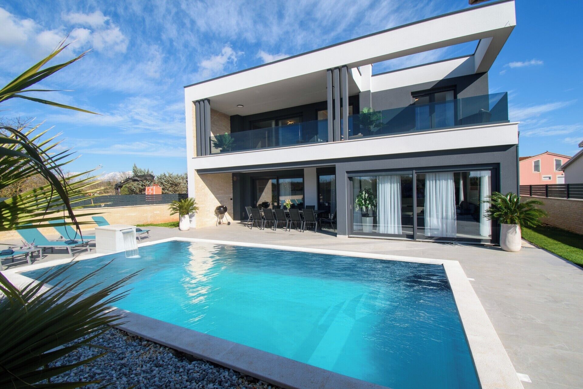 Experience an idyllic retreat in a prime location in Pomer, where every room boasts stunning sea views. This private accommodation features three spacious bedrooms, accommodating up to six guests, with each bedroom offering en suite bathrooms, a TV, and air conditioning for your comfort. The fully equipped kitchen and inviting living room to create the perfect setting for relaxing and enjoying quality time together. Outside, guests can bask under the sun by the swimming pool, which can be heated for an additional fee, ensuring a luxurious experience during your stay. Children will love having fun on the trampoline, making it a fantastic space for families to unwind. A damage deposit is required upon arrival, which is fully refundable at checkout as long as everything is in order. Nestled on the Medulin Riviera, Pomer boasts a rich history as a fishing village that has transformed into a hub for marina and nautical tourism. The area offers a peaceful ambiance while providing essential amenities like supermarkets, bakeries, restaurants, bars, and even a pharmacy, all within a 10-minute walk. The closest beach is just 400 meters away, while larger supermarkets are about 800 meters distant, and the nearest restaurant is 1.5 kilometers away, ensuring that you have everything you need for a relaxing getaway.