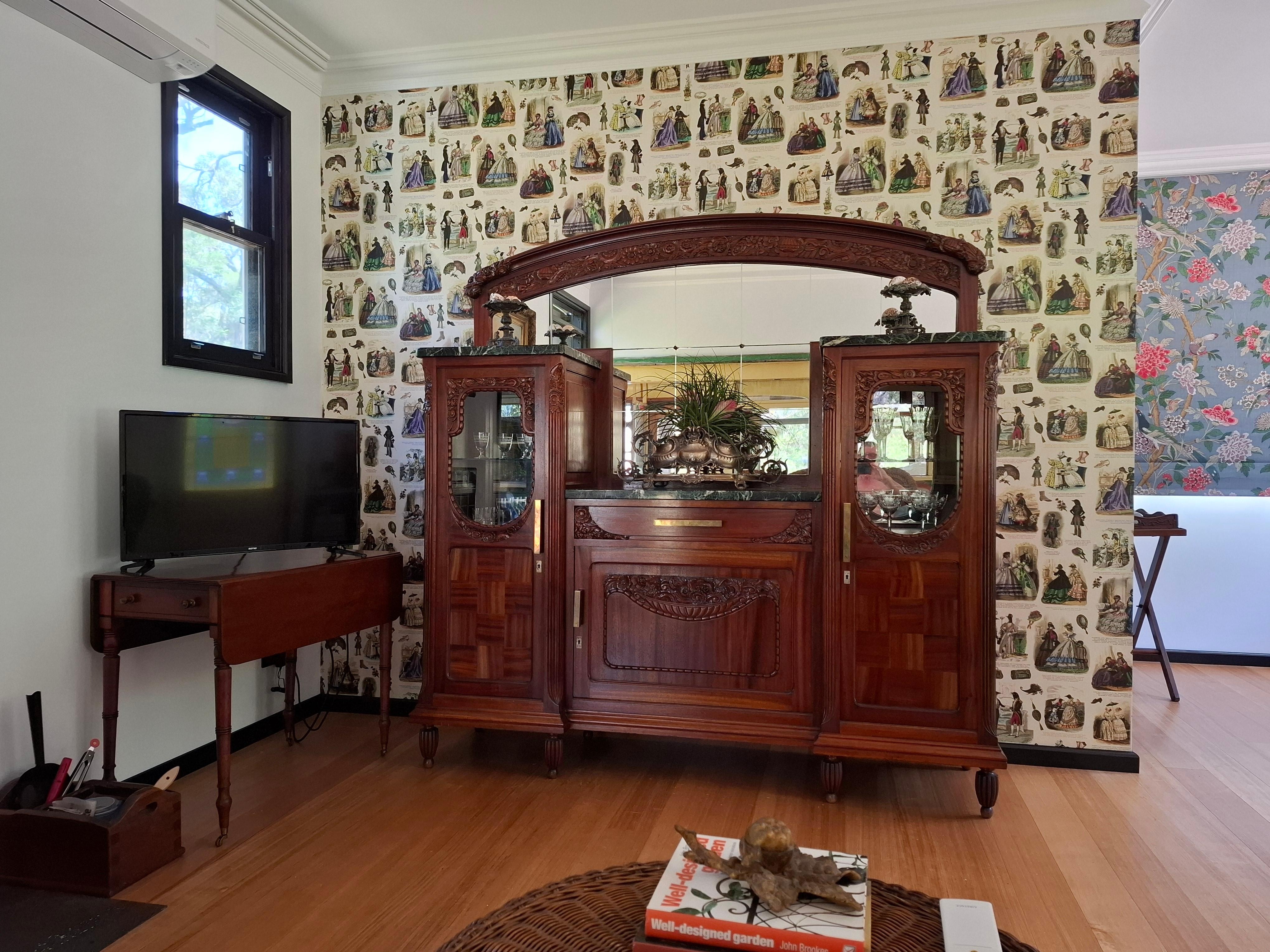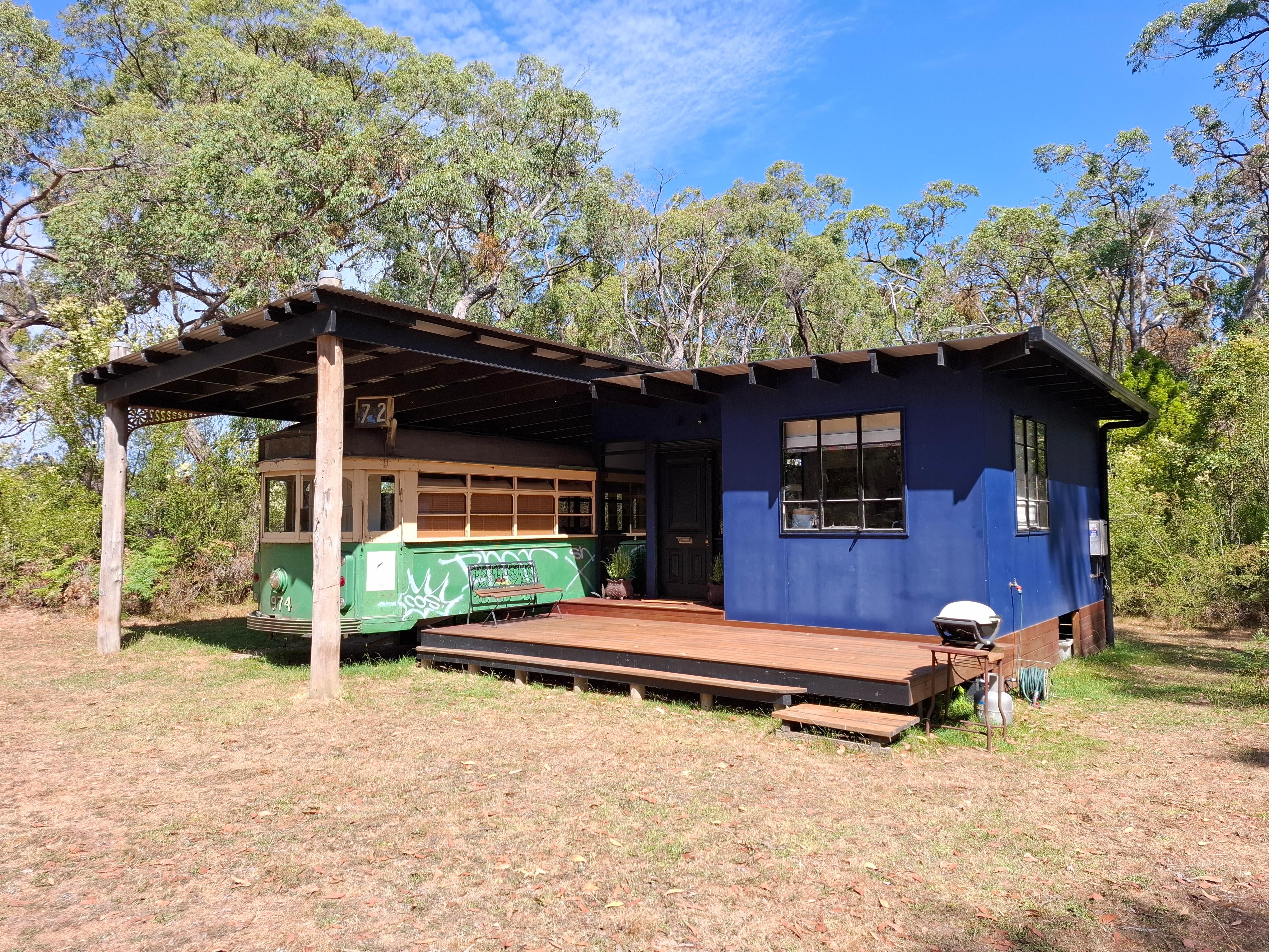 Being of historical significance to our great city, the Tram has been restored and renovated with one bedroom, dining area and seating area retaining original features such as signs, shutters and flooring all brought back to life, the graffiti retained. The tram features English designer fabrics, designer wallpaper, antique furniture and a warm ambient setting. The extension of the Tram has open plan living, with lounge chairs, TV, split system and wood fire to enjoy. The kitchenette has microwave, fridge, Smeg coffee machine, toaster and kettle. A modern bathroom with a huge shower, stocked with natural body and hair care products. The front deck invites you on your unique holiday, to sit and enjoy the sounds of nature.