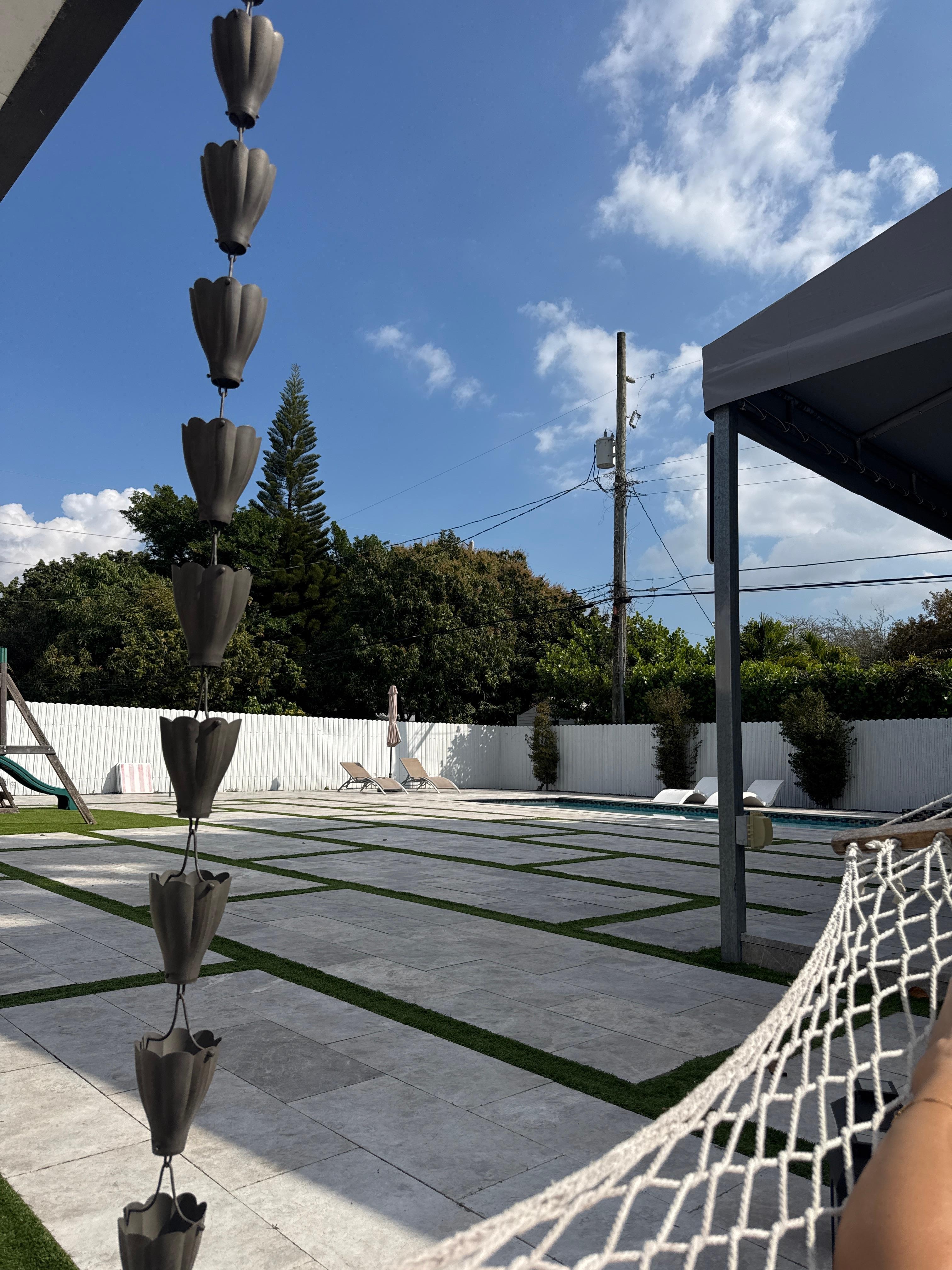 Conveniently located in the heart of Miami. Ample parking in the front area. 3BD/2BATHS inside and half bath outside. Full kitchen and dining room with everything you need for your stay. Outside the patio is very spacious with entertainment for the whole family to enjoy. You have another dining area outside with fridge, and cooler to move around the patio for easy access. Outside laundry with enough supplies for your stay.