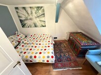 We have stayed at many Vrbo and other holiday properties. I rate this low unlike other current reviews of it for the following reasons. #1. Bedrooms third floor location from main floor bathroom. Climbing narrow staircases with loose and /or no railings. Recommend bedrooms on second floor with 2 piece bathroom added. #2. fire safety . One door in and out. Not sure how this could be better but I’d hate to have to climb out of the third floor bedrooms through a dormer window onto that steep roof. #3 Electrical plugs on each side of beds. One bedroom plug by door. Other bedroom plug at foot of bed.It’s my fault for booking this as if I’d studied the suppled photos better I’d have passed. I caution against booking this place as we felt it has safety concerns.