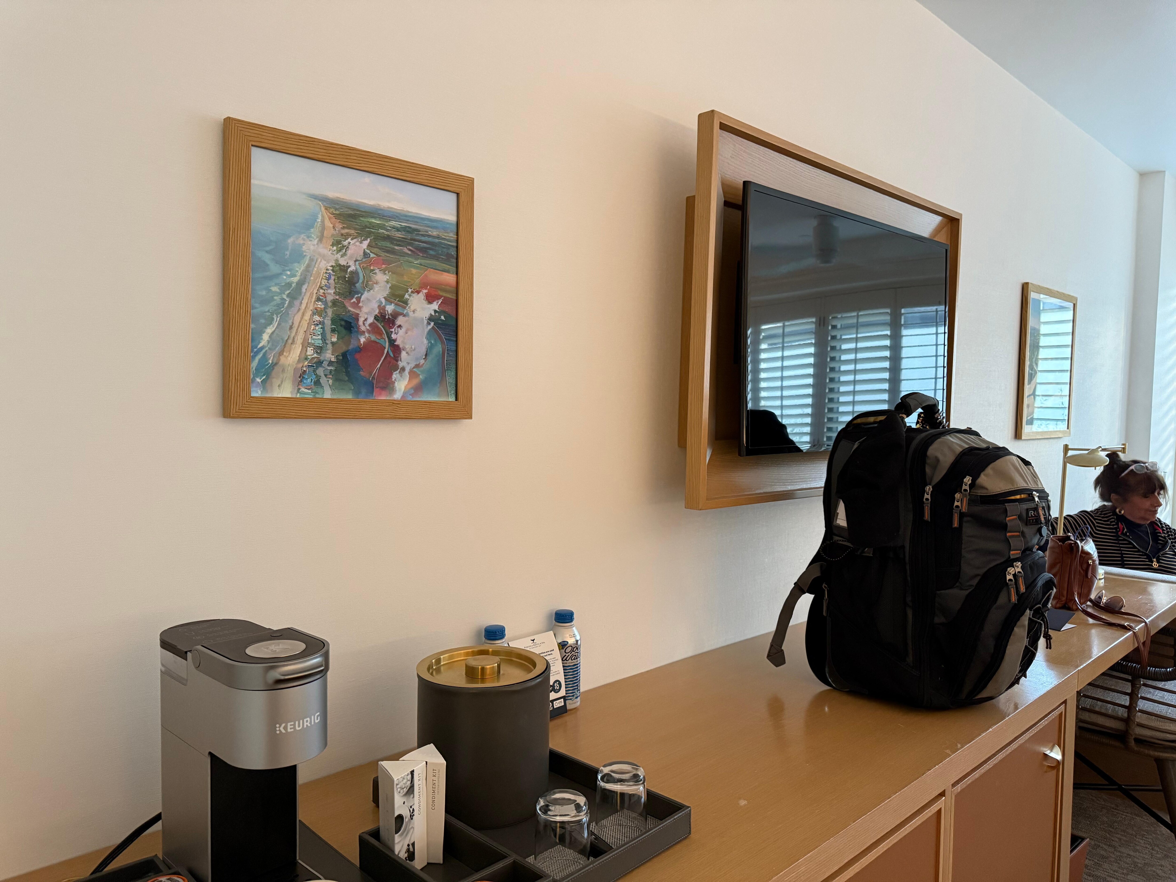 The only major downside was the room's HVAC system. There was a forced air 24/7 continuous movement of "outside" air into the room, which resulted in air temps of 66-68 deg. F, when one was gone from the room for a period of time, even if the heat was left on. So, it appears that a motion sensor in the room detected one's presence and turned off the heating, when one was gone from the room. This took a while to learn. Once one returned to the room and one's presence was detected, the heat would come back on. It took 10-15 minutes to bring the room back to the thermostat's set temperature.