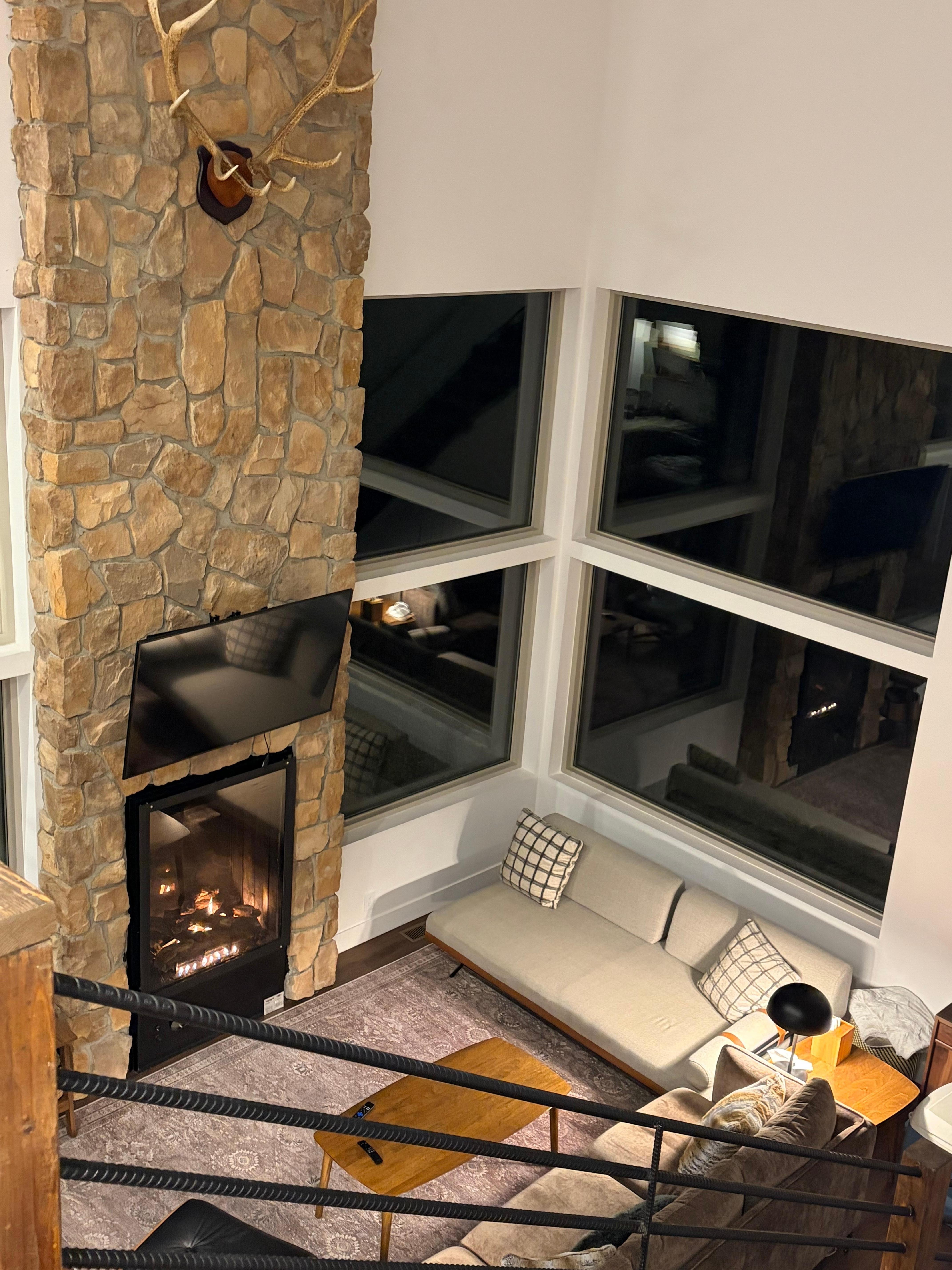 Televisión y chimenea
