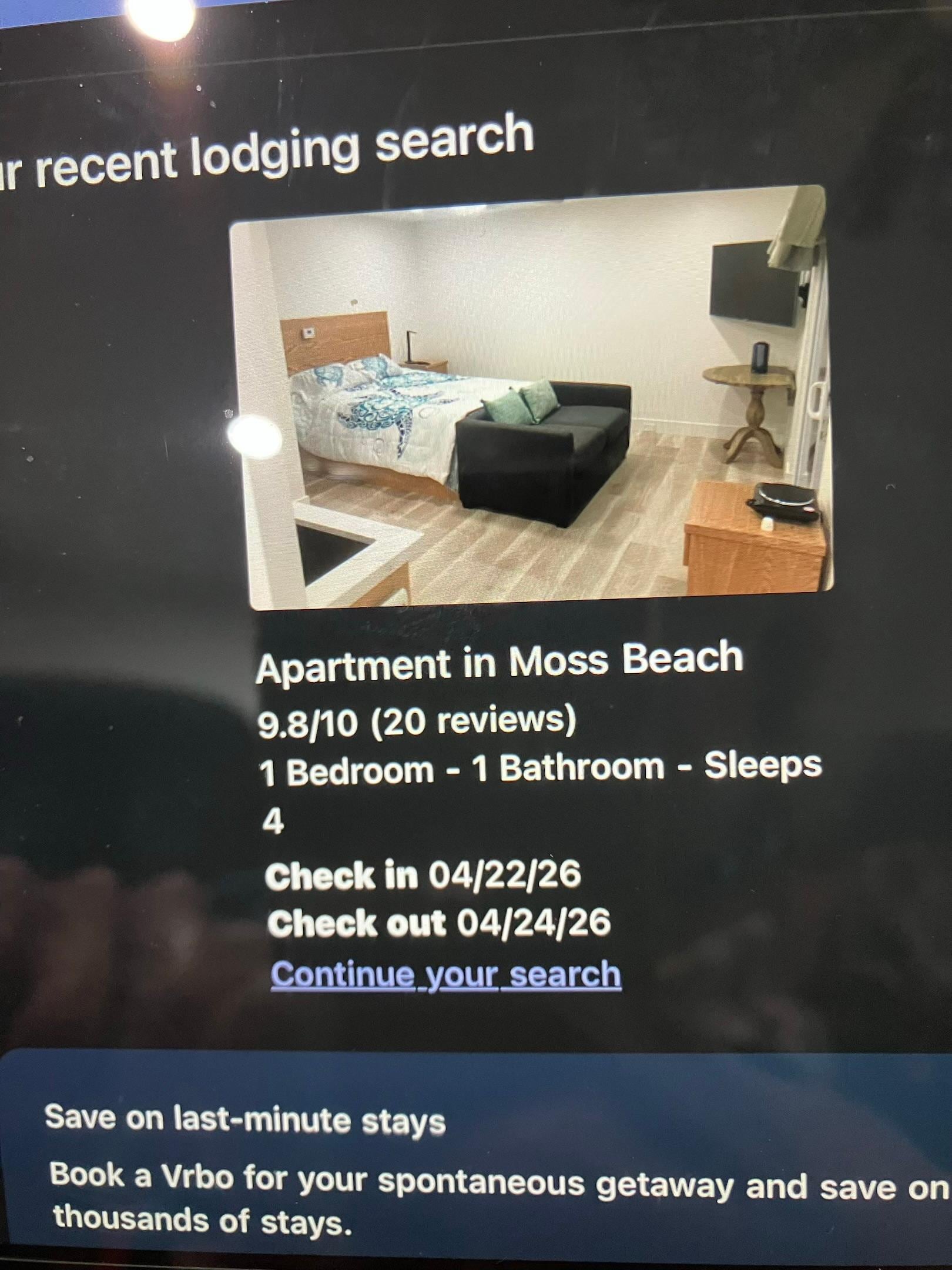 Relax in this newly renovated private studio after a fun day at the beach or exploring our beautiful coast. 1/2 mile from beach & 7-minute drive to Half Moon Bay or Pacifica! Separate entry through a private fenced patio with access to hot tub (shared with guests in main house), new hybrid queen bed, 55" TV, ceiling fan, central heat, kitchenette (with hot plate/basic cookware/dining ware/coffee maker/microwave/fridge freezer combo) and private bath/separate shower. The new loveseat is also a comfy sleeper - $50.00 for each additional guest, up to 2 with 4 guests max in unit. Note: EV Charger is $25.00 per use.