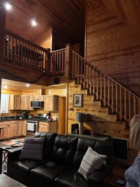 Amenities that appeal to couples at this cabin include a fireplace, a kitchen, and a smart TV.