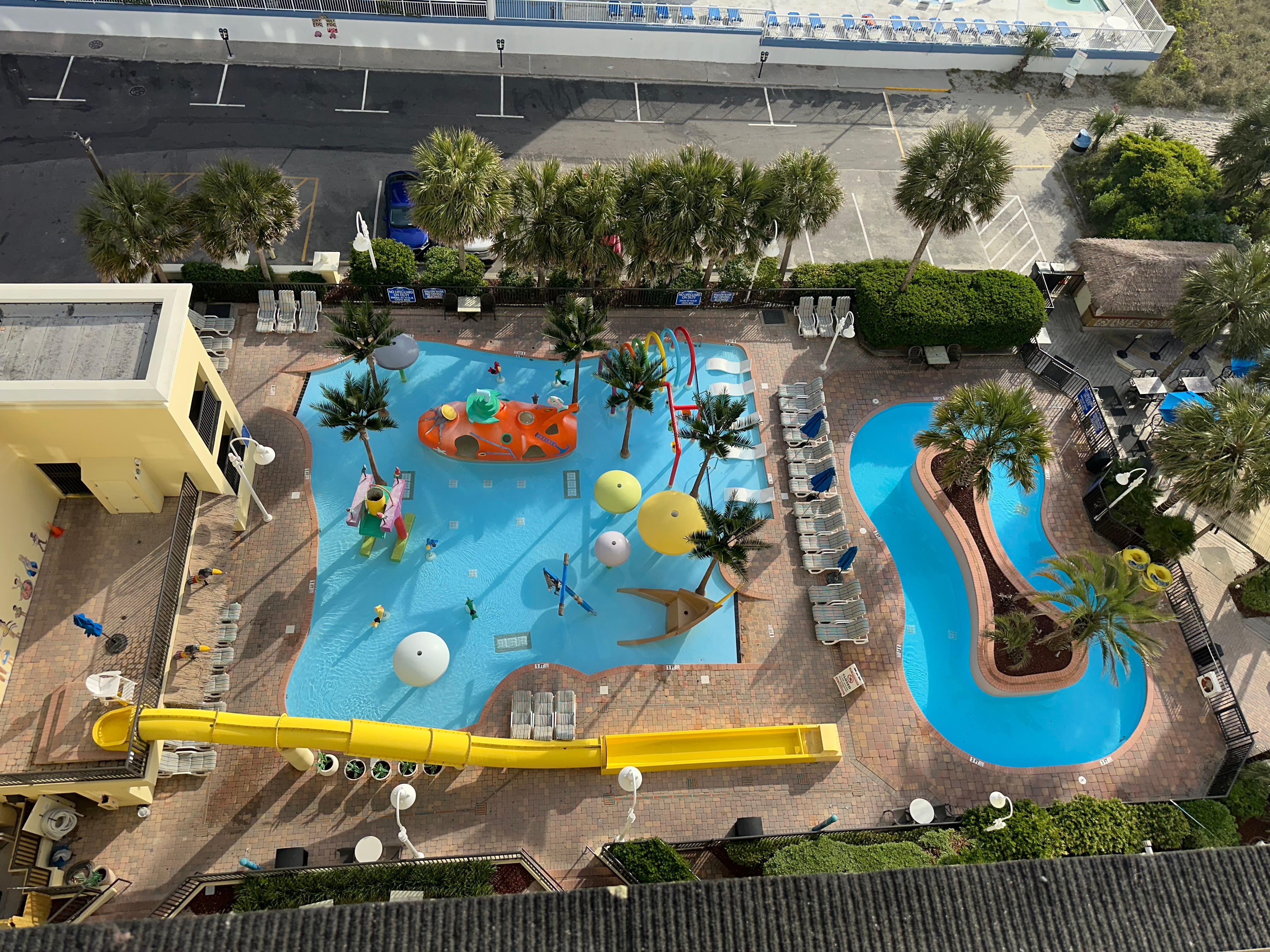 Conveniently located on the beach, quick walk . Nice view from balcony. Kids enjoyed the pool area and beach. Easy check in and out. Great text communication with front desk. Added extra day, was told room service would clean up rooms while out. Never did, other than that it was a great mini vacation.