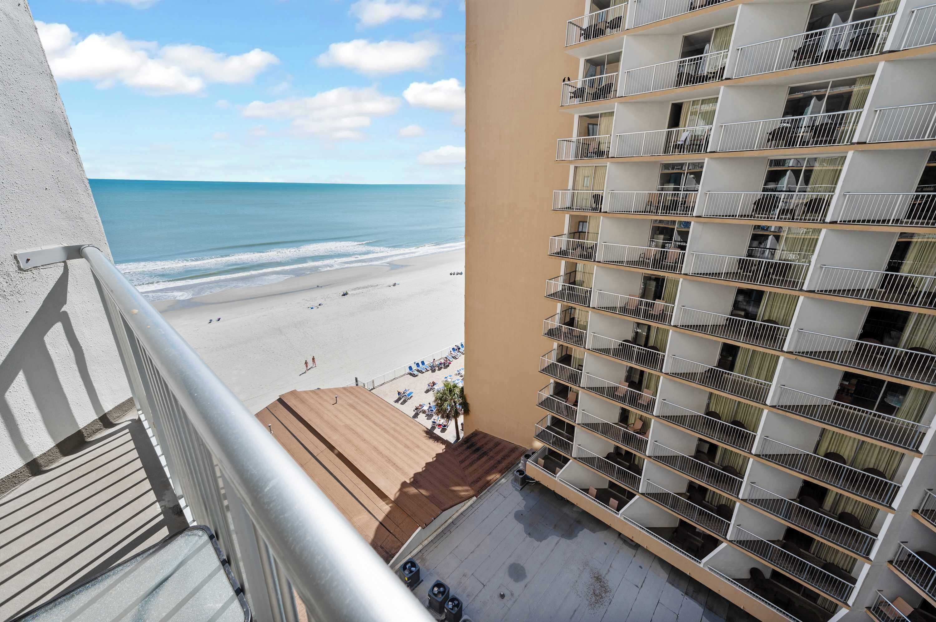 Yes, every condo at Top Floor, Direct Oceanfront Views - Heated Pools! comes with a balcony and some offer lake views.