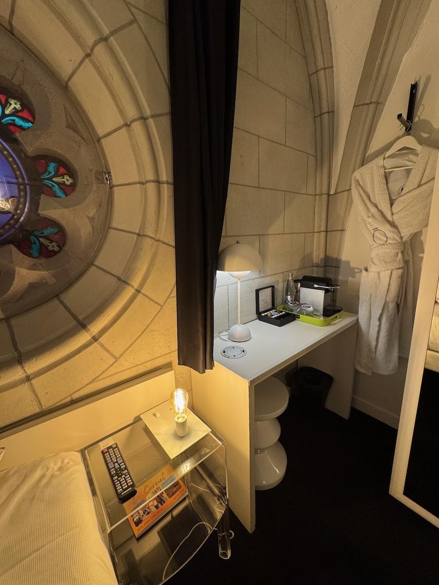 Negatives: lacked character. Lobby was 80’s disco, not elegant (but front desk paintings were nice). Poorly trained staff; the night staff tried to be helpful, but didn’t know many things; I was told to ask the manager the next day. Was supposed to get a discount for spa services, which hotel website said included a massage service; I chose the hotel for a massage. However, I was told that massage wasn’t included in discount. Was supposed to get discount on food, but was told there wasn’t a restaurant. Asked if discount applied to buffet breakfast, but staff didn’t know. No onsite restaurant (only a breakfast room with expensive buffet breakfast). I went to lobby to order a drink and relax at the "bar", but no actual bar, just a few chairs in the lobby. And drinks must be ordered from room service, so was told to go back to my room to order from a QR Code. However, there was no QR code in my room, so staff had to bring one. Gave up and went to sleep. I stayed in the least expensive room, but still expected some interesting architectural elements. But they were mostly covered up with drywall. Furniture too large for room, making it cramped. Espresso maker was only slightly filled with water. no outlets near bed, poor lighting over vanity (kept trying to turn on even though it was already on), paper cups that didn’t fit the espresso maker.