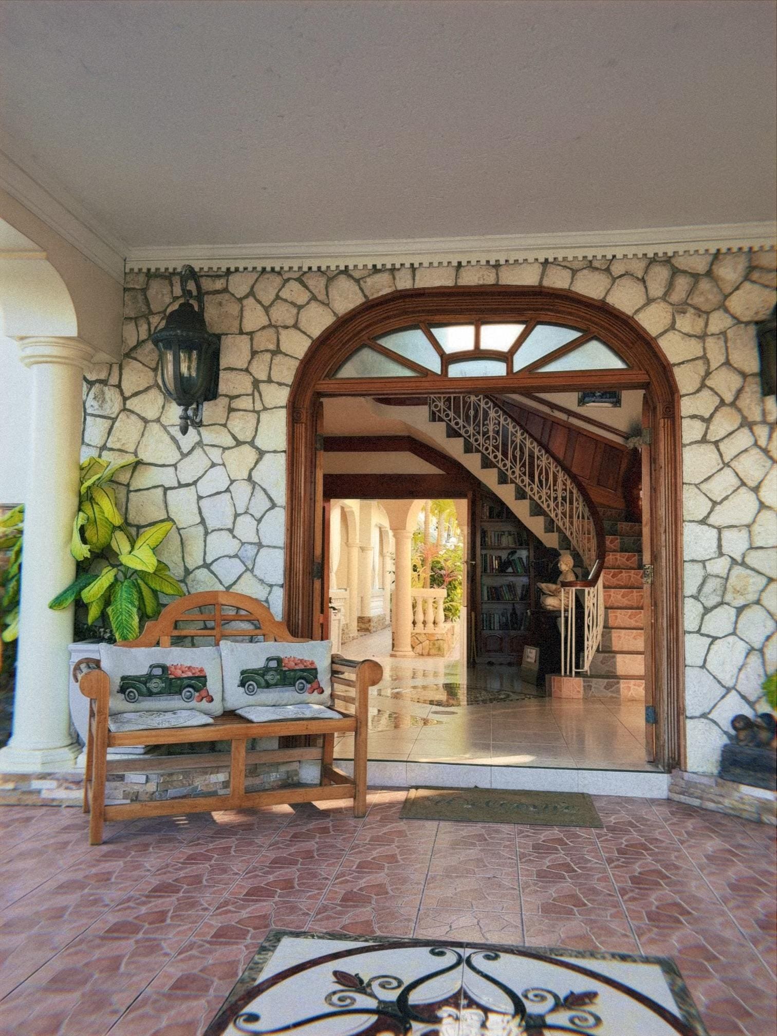 The included breakfast was a choice of Jamaican or American. Portions were generous, and included an appetizer of fresh fruit and cake. We had dinner at the restaurant once, and it was hearty and delicious (but be sure to order in advance).
