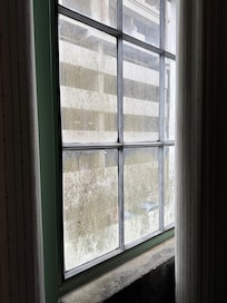 There are other things that could be improved just to help with the feel of the place. There was a laundry cart in the hallway just outside the elevator. I’m assuming that’s where it lived lol, the exterior windows were a nasty moldy green, the “thermostat” in the bedroom was just a knob that said cooler and warmer. We turned it all the way to warmer and the room never warmed up. It just wasn’t blowing quite as cold. Like every other hotel in the world the fan in the bathroom didn’t work. There are light switches that didn’t seem to turn on anything in the room, the phone in the sitting area didn’t have a line connected to it. So not really sure why they put it there.