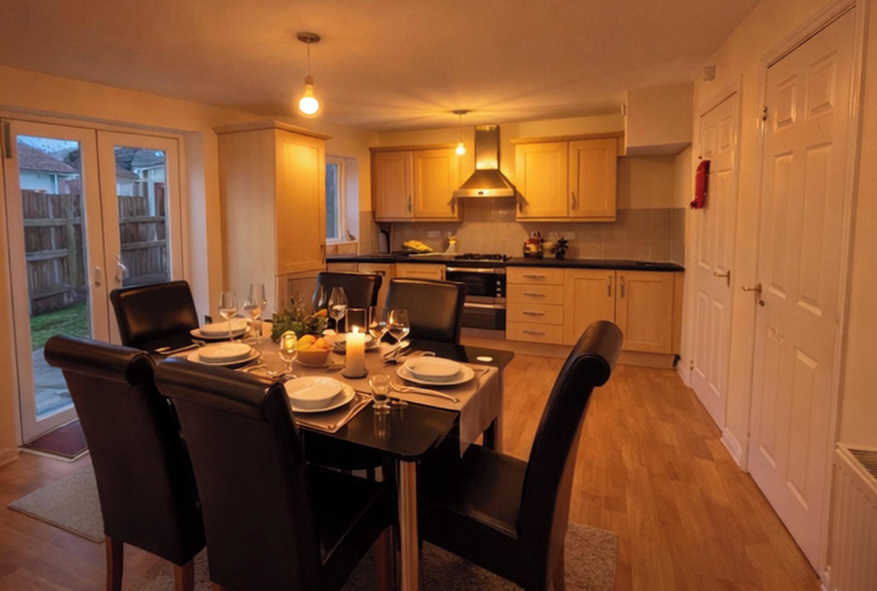 Bedroom 3: Kingsize (5ft) Bed, Day Bed Single (3ft) Bed, Freeview Smart TV. Oil central heating, electricity, bed linen, towels and Wi-Fi included. Travel cot and highchair available on request. 2x Stairgates. Welcome pack and doggy extras. Back garden with patio, sitting-out area, Modern pellet barbecue and garden furniture. Hot tub for 6 (private). Private parking for 3 cars. No smoking.. Discover an exquisite retreat nestled in a village setting, seamlessly blending seclusion with convenient access to local amenities.