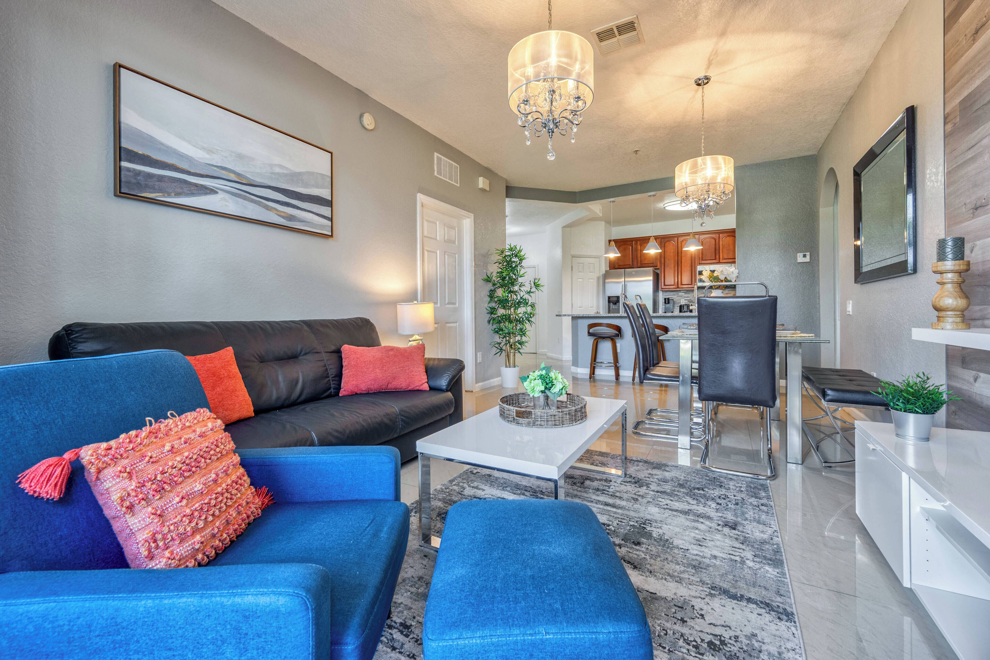 Urban sophistication meets cozy vibes in this super chic 4-bedroom gem on Orlando's International Drive–steps from the best theme parks, attractions, dining, and shopping this epic city has to offer. Set your bags down in one of three delicious king bedrooms, and send the littles off to enjoy the whimsical themed bedroom—where their imaginations will run as wild as the Universal Orlando coasters down the road. Start or end your day at your private pool ft. loungers, a patio table, and more.