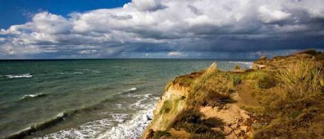 Nuestra casa de huéspedes con 7 apartamentos vacacionales fue construida en el año 2000 y está ubicada en el borde del centro de Ahrenshoop, a solo 80 m del Mar Báltico, separada por playa, duna, dique y camino de aldea. En el dique, puede llegar fácilmente a Darßwald a pie o en bicicleta, cuya impresionante playa occidental es una de las piezas centrales de nuestro parque nacional Boddenlandscape. Pero también se recomienda explorar las praderas de Bodden hasta el puerto de Althagen o un paseo por la costa alta, uno de los pocos acantilados del mar Báltico. El Haus Martha se encuentra a 800 metros del centro de Ahrenshoop. Aquí encontrarás galerías, tiendas y restaurantes.