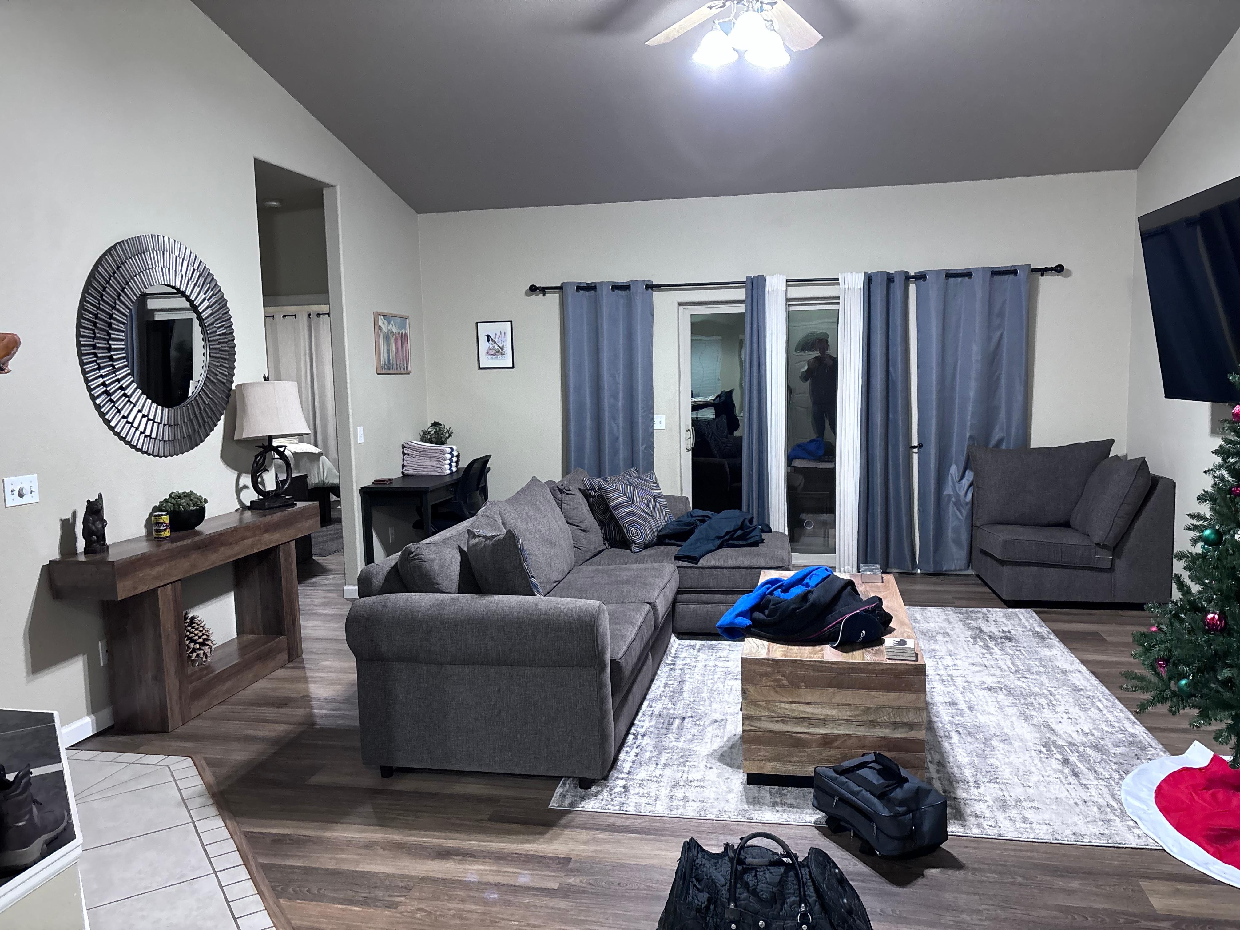 • Cozy living room with fireplace & new furniture