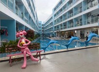 Our first room the lock on the sliding glass door on the main floor was broken. We were moved to another room however the fridge stunk so upon opening it the room smelt horrible. The light initially worked in the bathroom and then that burnt out. The breakfast was horrible in a small eating area with everyone else there was no seating. The hotel caters to Japanese, Chinese and Koreans. The TV including the controls have no english. Upon checking out the front desk did not have all the receipts so after we paid what we were told was owed and we left to go eat since there is not a restaurant on site we were chased down at the restaurant. We told them we would be back after we ate but then the proceeded to call the restaurant where we were eating. It was embarrassing to say the least even after we said we would return. It’s a very institutionalized hotel with not much to offer in an alley with concert views of a pool with bad decore.
