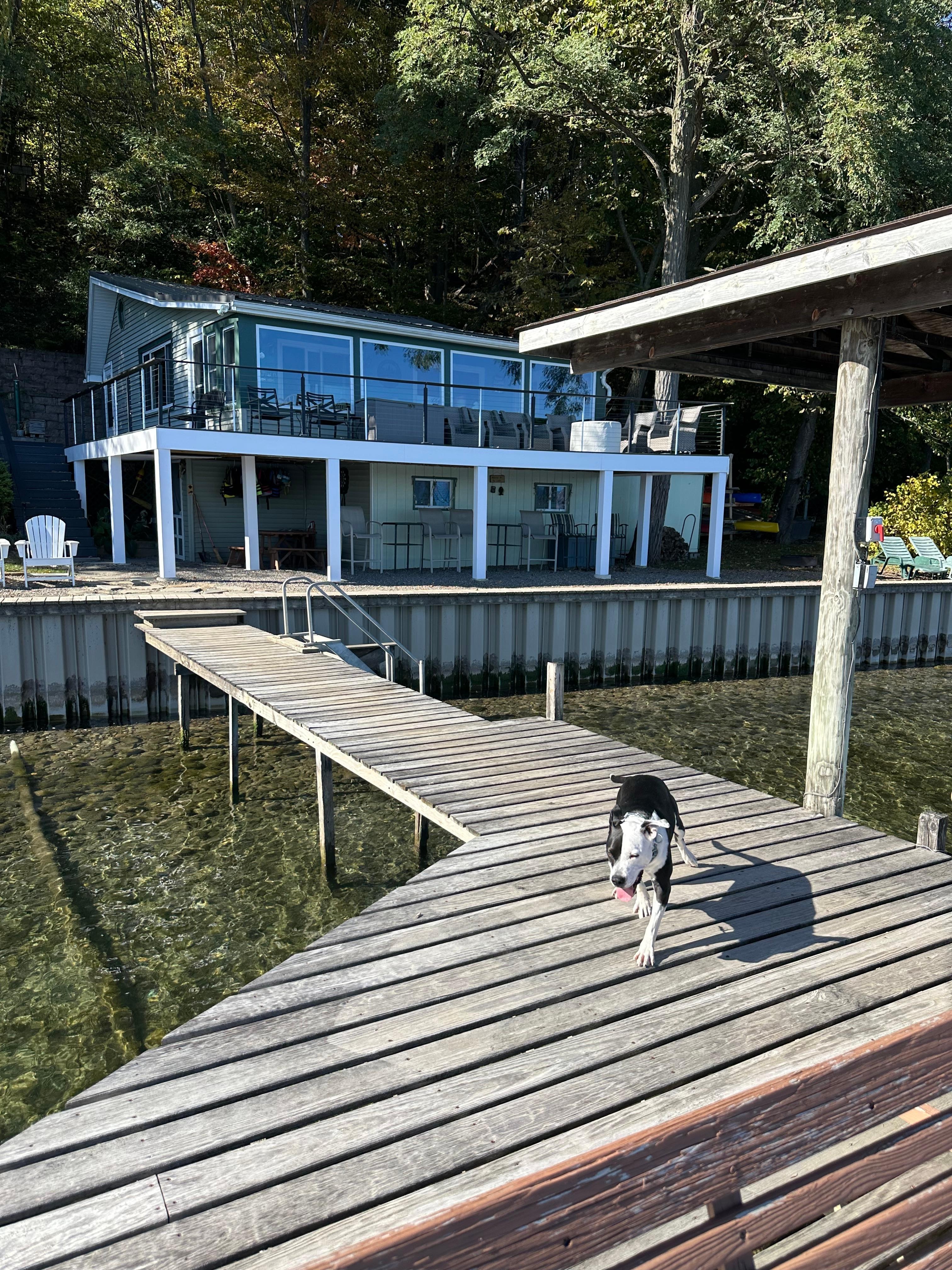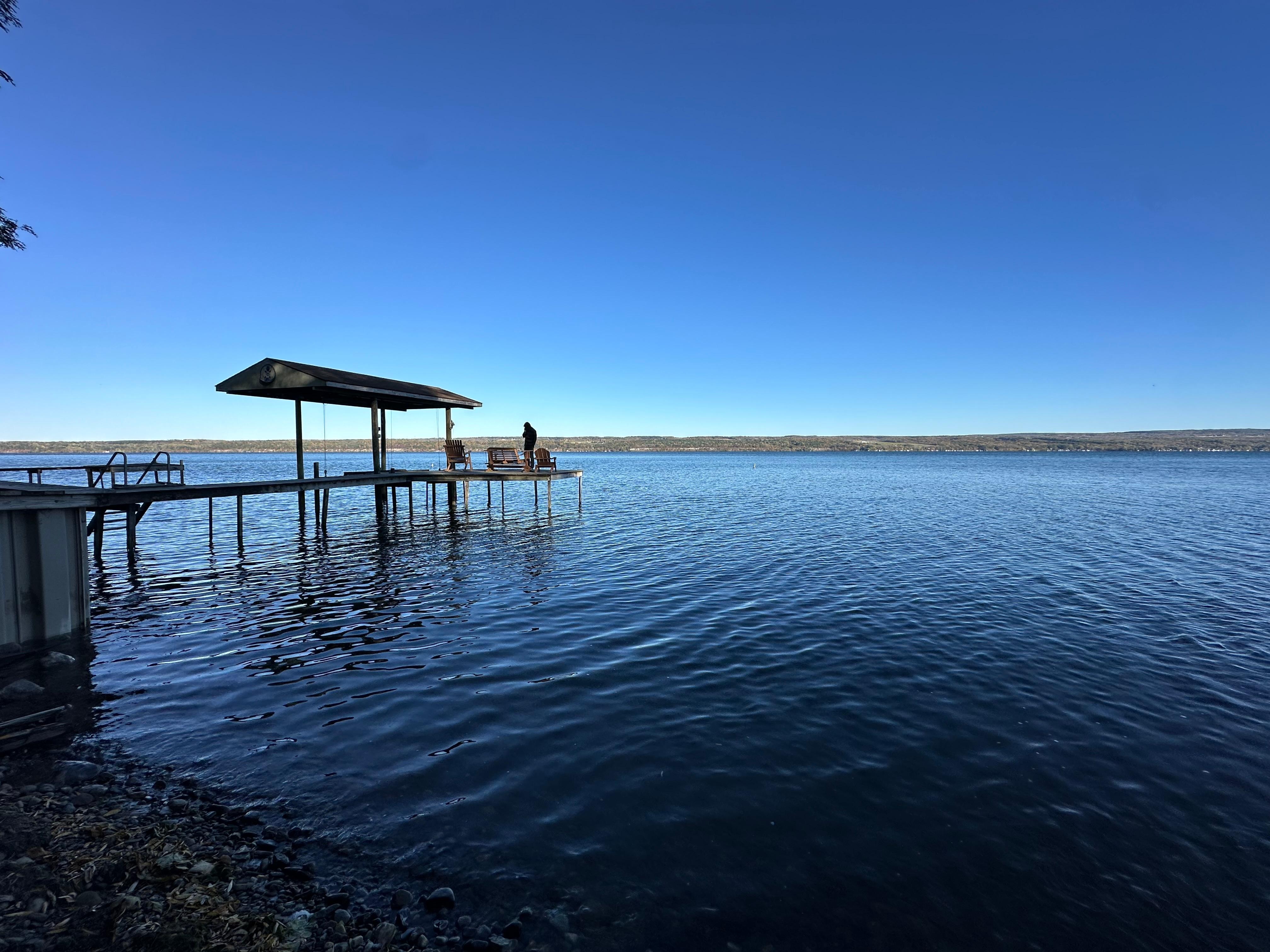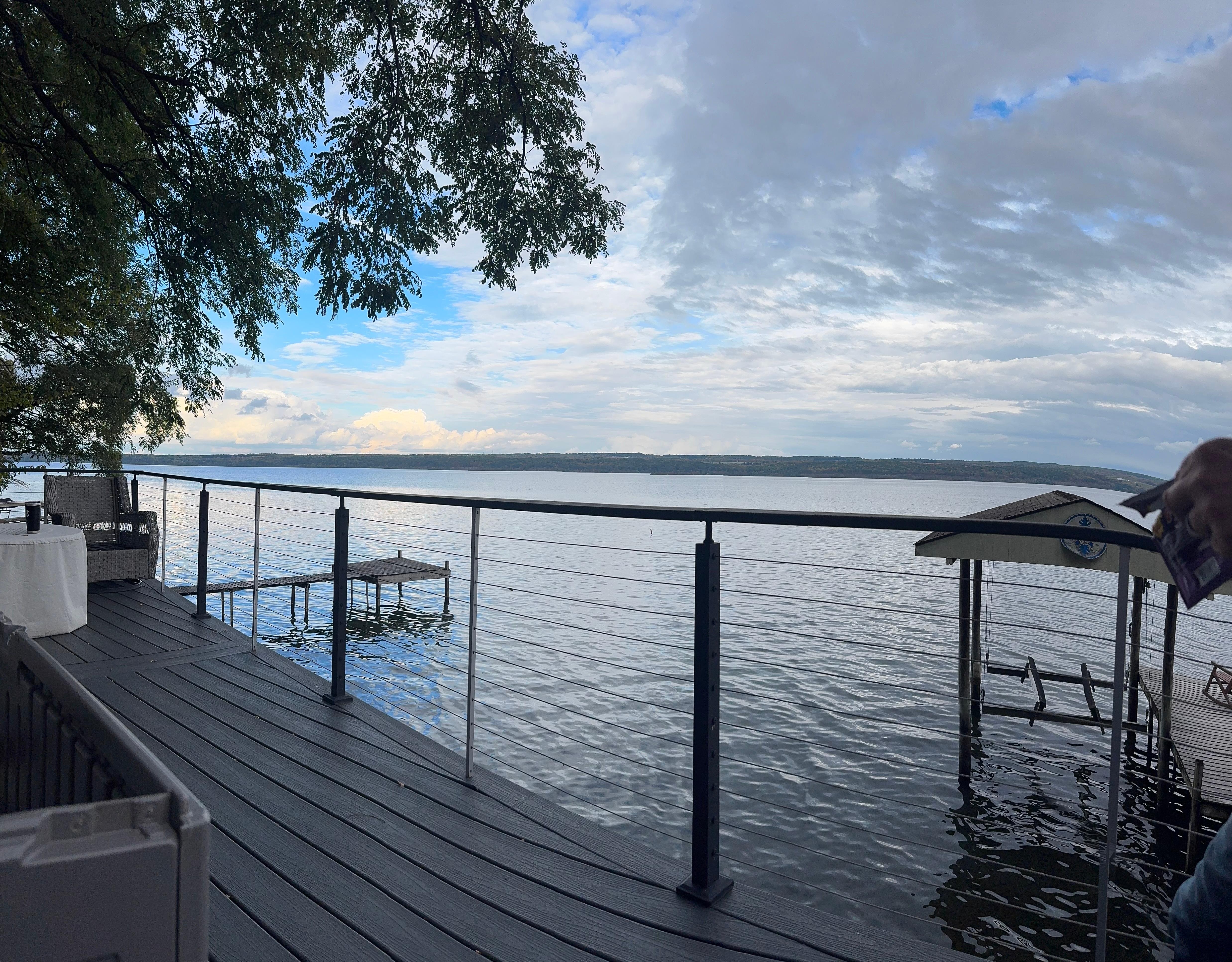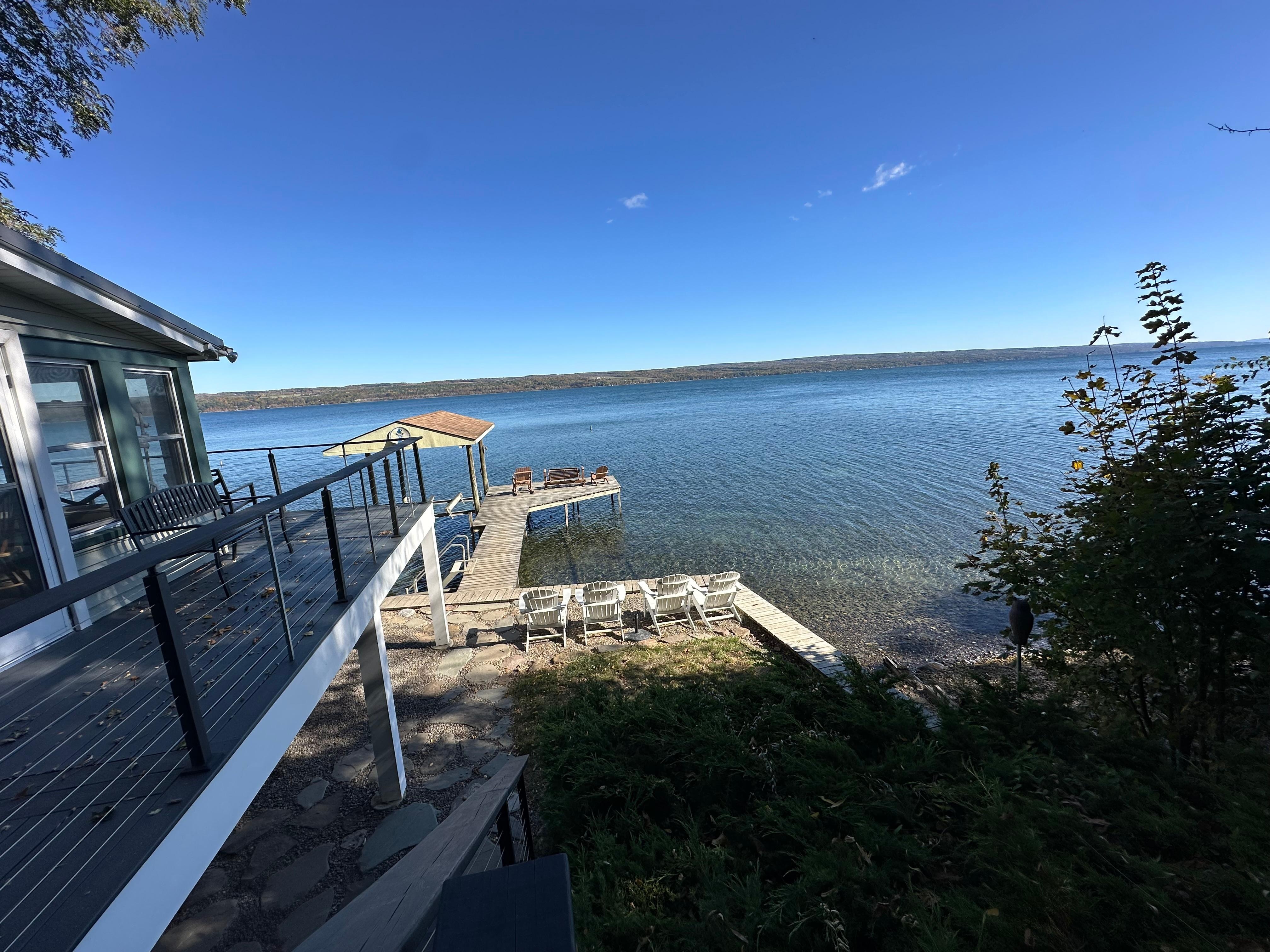 New in 2024 is an expanded Trex deck overlooking Seneca Lake, new side deck and stairs, new laminate flooring in the front porch, new and easier to operate trolley system and new living room and porch furniture and new outdoor furniture and gas firepit.