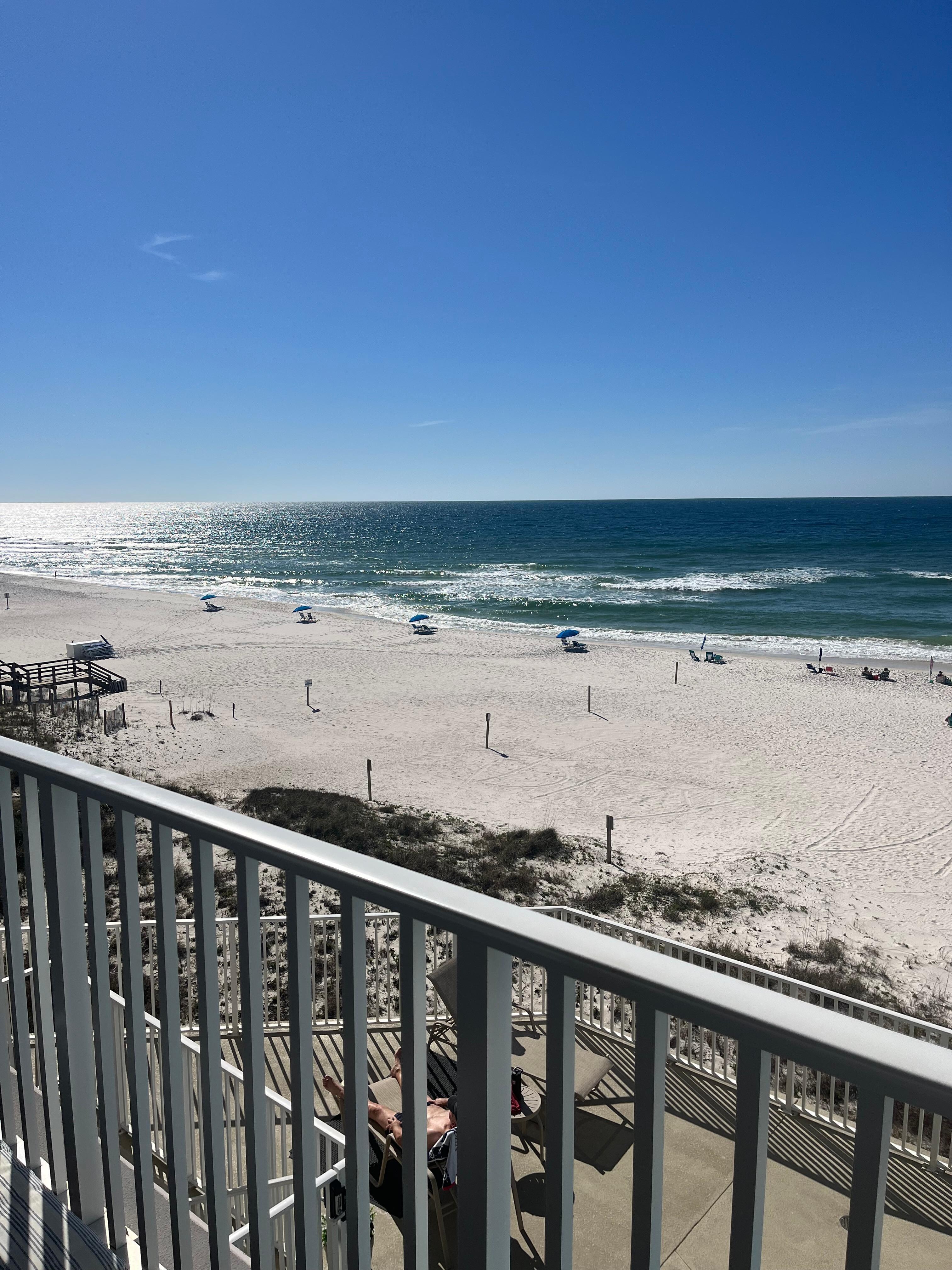 If you are looking for a Nice, Clean condo directly on the Beach, then Turtle Point Condo at The Windemere in Perdido Key is the place for you! This 4th Floor unit is a relaxing place to stay. With 10 foot ceilings and porcelain tile throughout, you'll notice that clean, bright and airy feeling. The 2 Bed / 2 Bath layout sleeps up to 6 people. Enjoy Direct Gulf Views from a Spacious Balcony, which is Easily Accessed from the Living Room or Master Bedroom. 2 FREE Covered Parking spots Directly across from the Elevator give you Easy Access to come and go as you please. Smart TV’s, FREE Wifi, and a Pool and Hot Tub are just a few of the amenities.