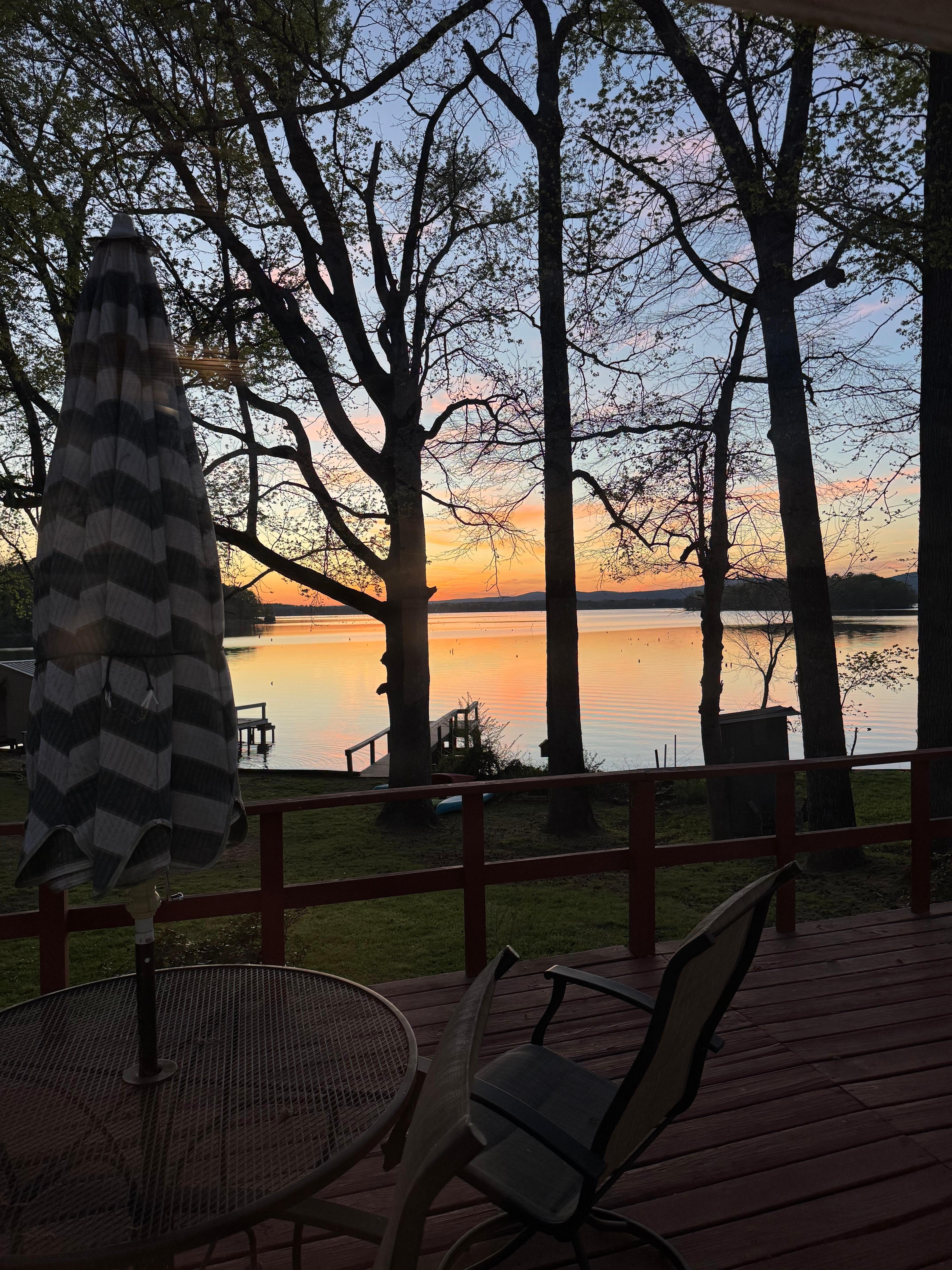 Our stay at this precious lake house was brief but memorable. It’s minutes away from Petit Jean State Park, which is where we spent our daytime hours hiking. The property was absolutely as advertised on VRBO. Jason, the property owner, was easily accessible, very friendly, and quick to respond when I sent him messages. There was absolutely everything we needed, less the groceries we brought, and much more. Seriously, when I say much more, I mean much more……plenty of towels, coffee (even Community Dark Roast for the Louisiana girl in me, laundry supplies, you name it, it was there. The sunsets were spectacular. We even spent some time in the lake to cool off. The price was amazing for what we received and I look forward to staying agin in the future.