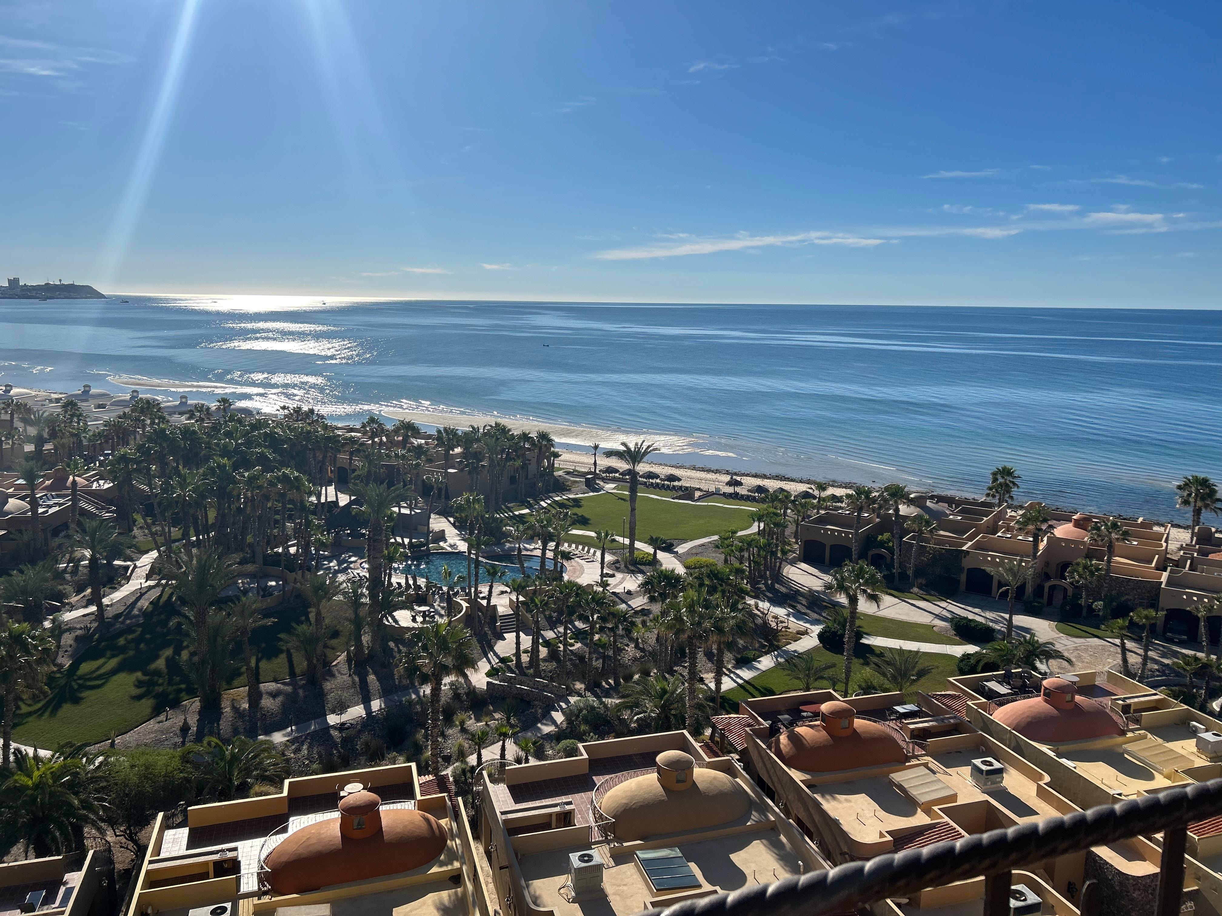 Located in the E building which is the closest to the ocean, this 7th-floor one-bedroom penthouse is one of the kind with a spectacular view of the Sea of Cortez and Old Port from your own balcony! It features high ceilings, granite countertops, slate floors, and a large patio accessible from both the bedroom and living room. The sofa and love seat in the living room can turn into a queen and a single bed if needed.